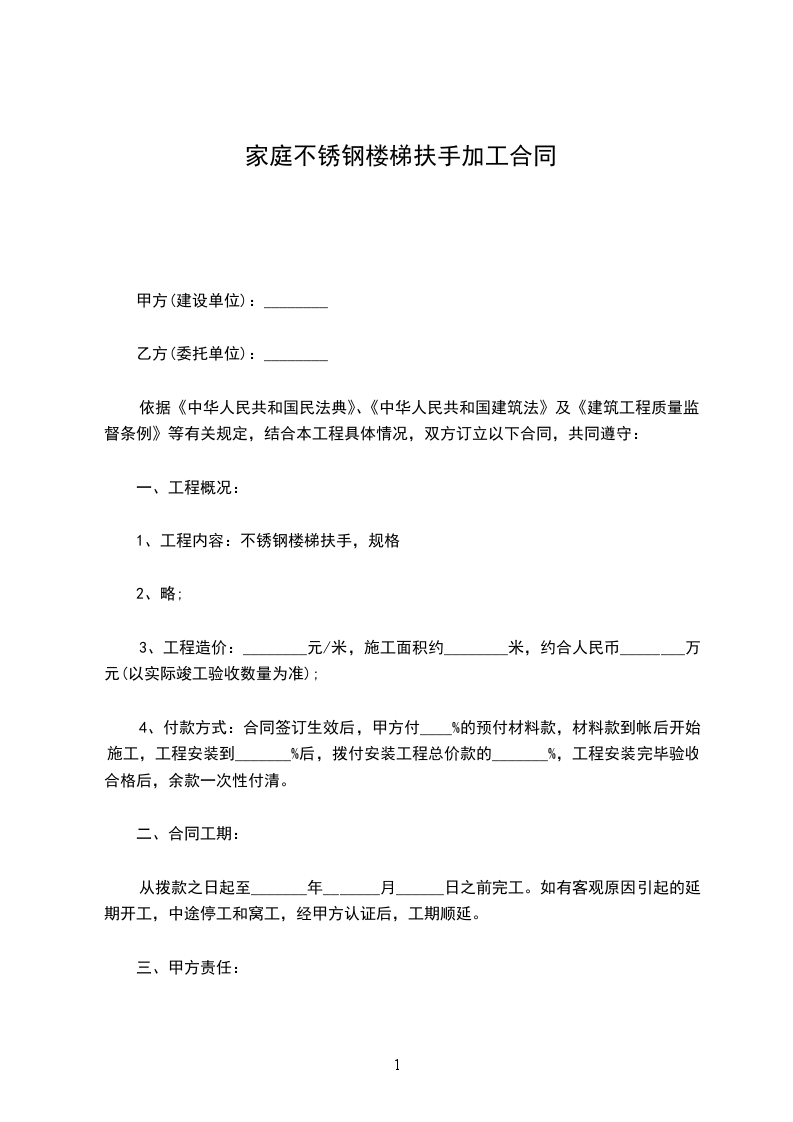 4、乙方不得无故顺延工期,每拖延一天罚款________元。工程质量不符合规定的负责无偿维修及返工。