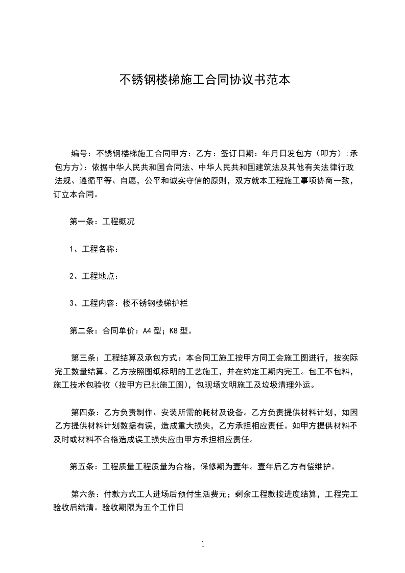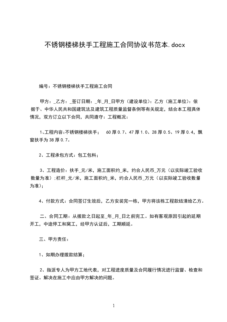 1、保证质量,保证工程如期竣工。保修期为一年,一年内出现质量问题,保修保换,人为造成损坏,由甲方承担;