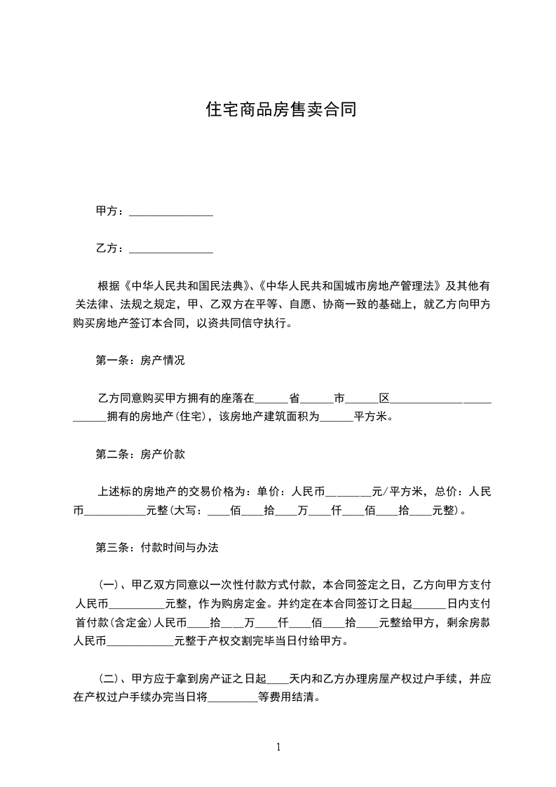 一、乙方向甲方购买座落在_________渡假村_________组团内_________楼房_________栋。建筑面积为_________平方米。其面积以_________省《建筑面积计算规则》为准。