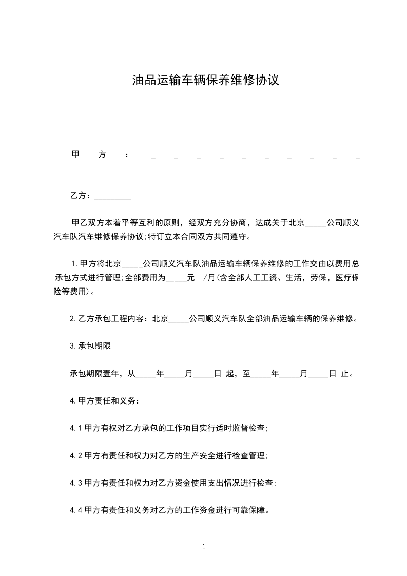 2.乙方承包工程内容:北京_____公司顺义汽车队全部油品运输车辆的保养维修。