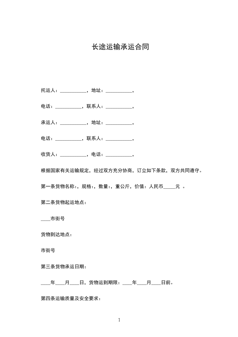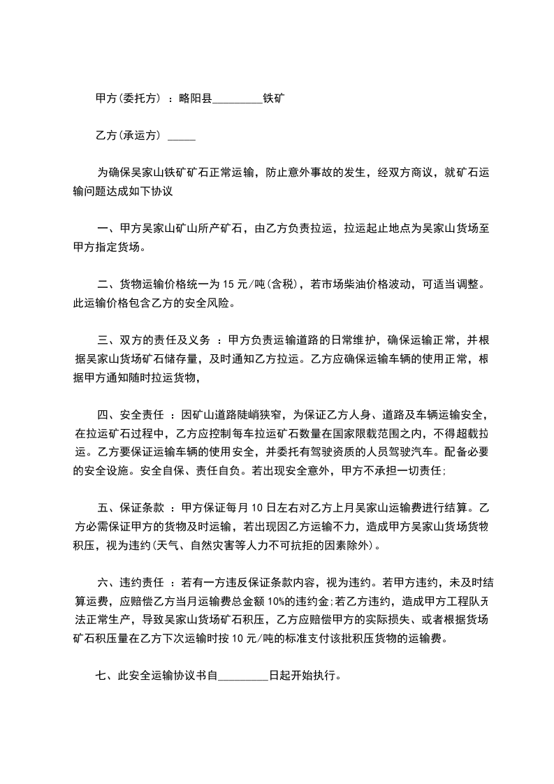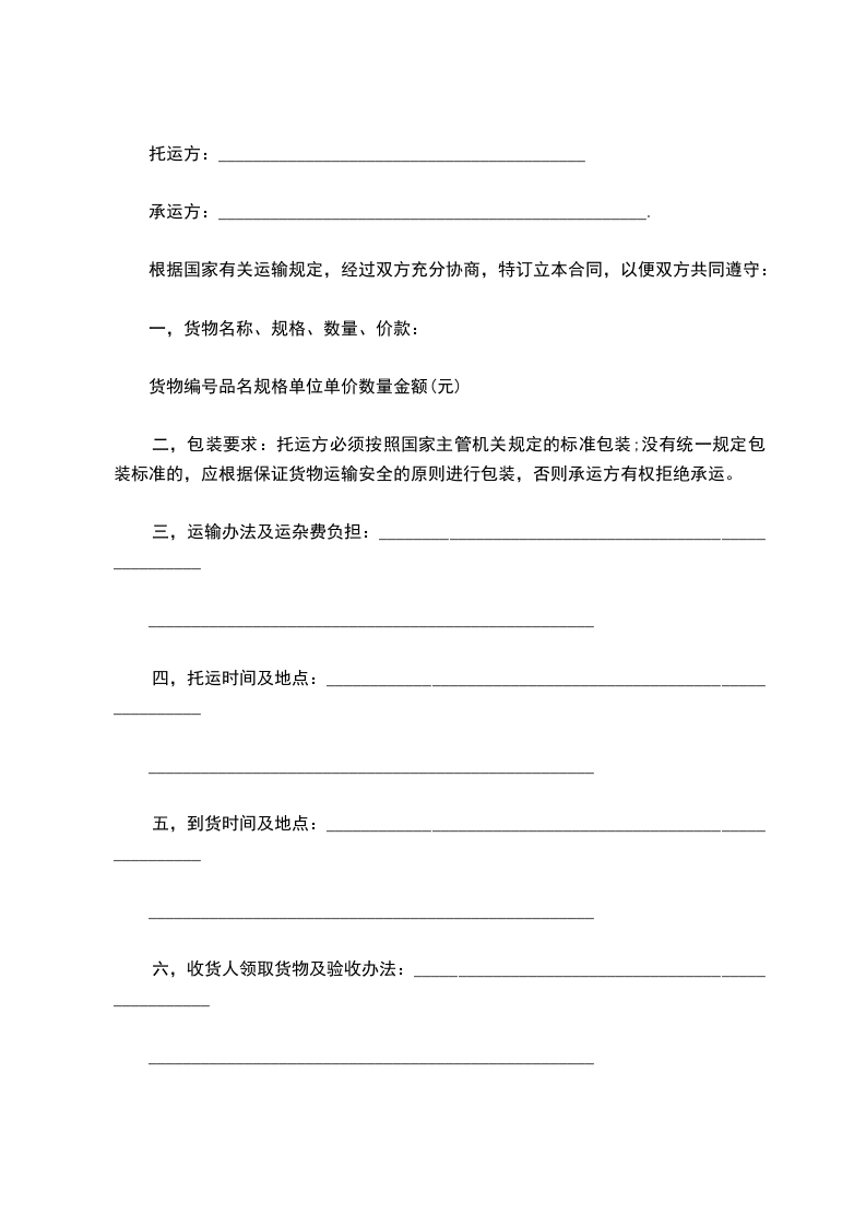 2、货物运输期限内,甲方委托乙方运输货物,运输方式为______运输,具体货物收货人等事项,由甲、乙双方另签运单确定,所签运单作为本协议的附文与本协议具有同等的法律效力。