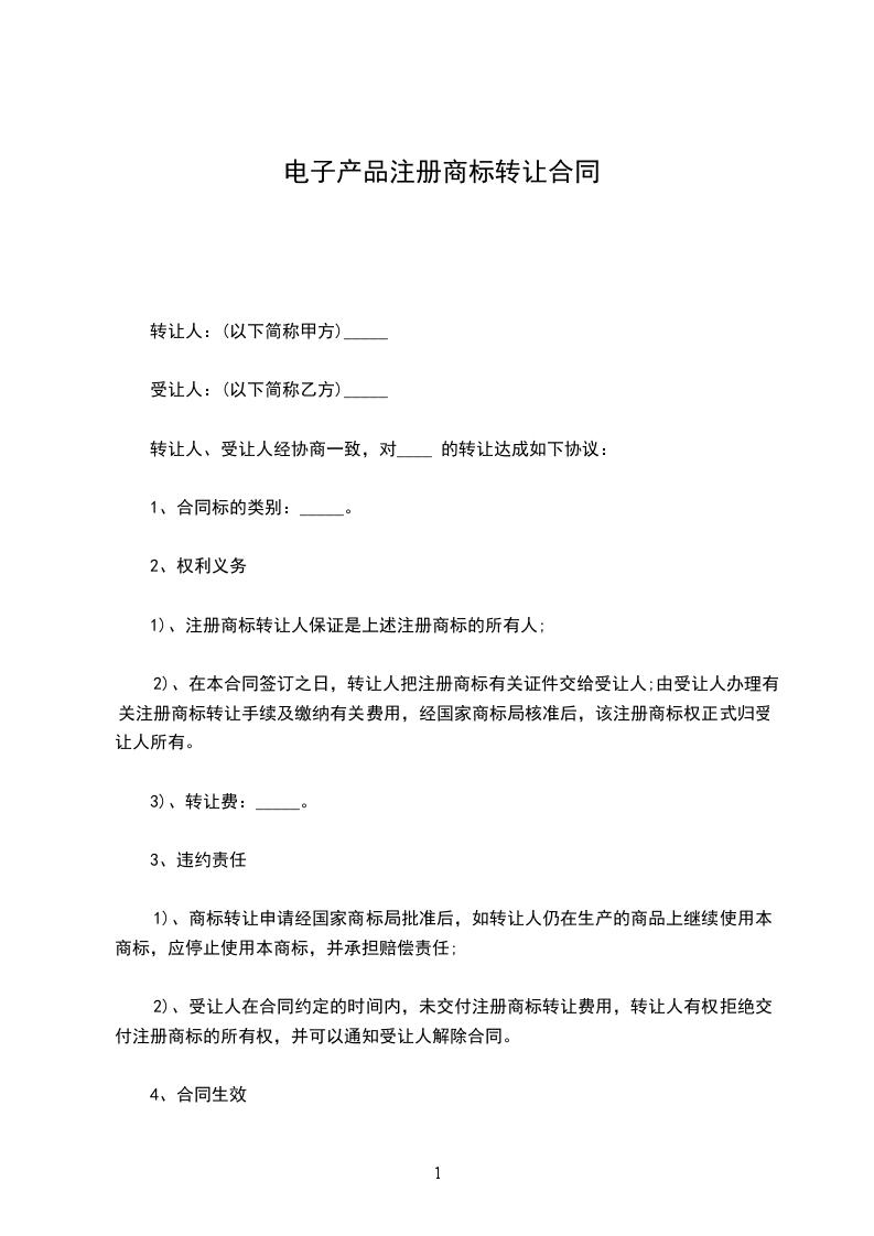 鉴于转让人拥有中国商标局注册使用于商品/服务国际分类第 类 等商品上的第 号 商标标示以及该商标设计图样的著作权(以下简称该权利),鉴于受让人希望受让权利,转让人和受让人签署商标转让协议如下: