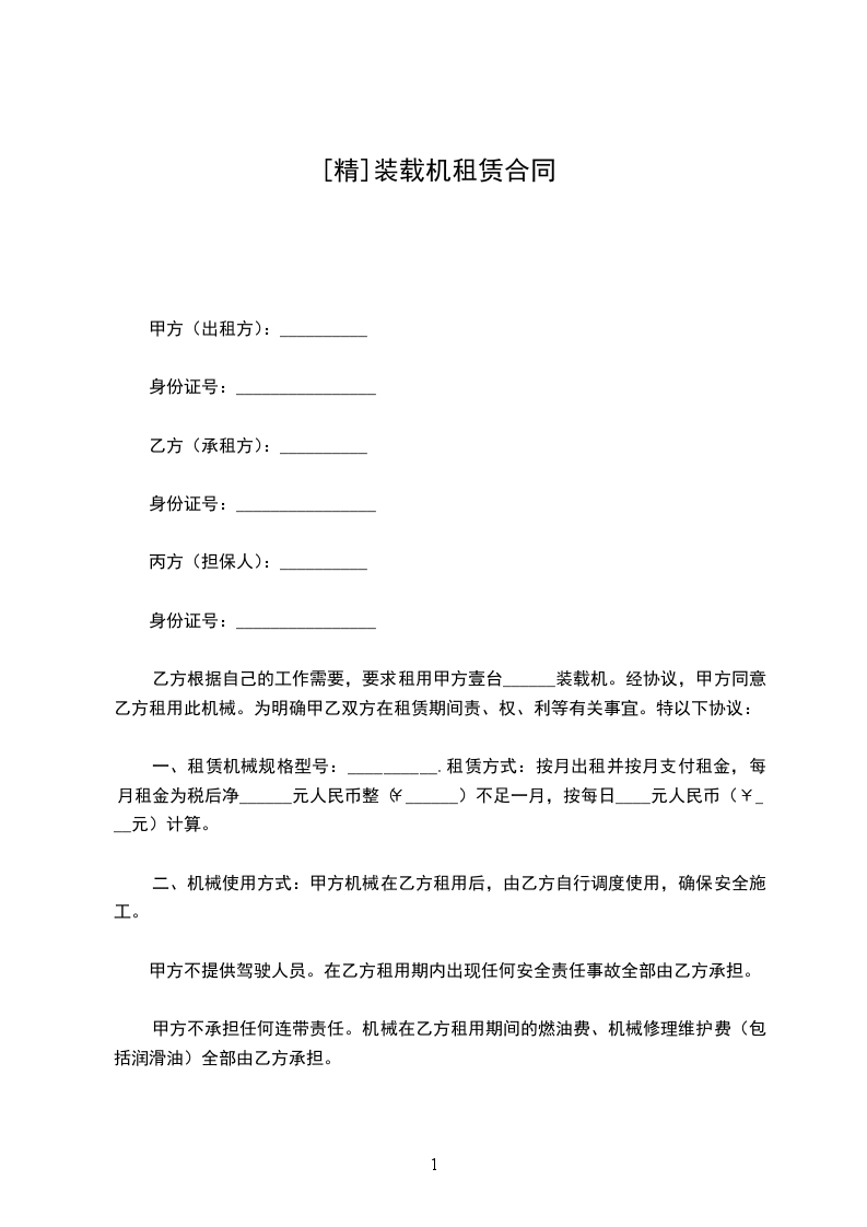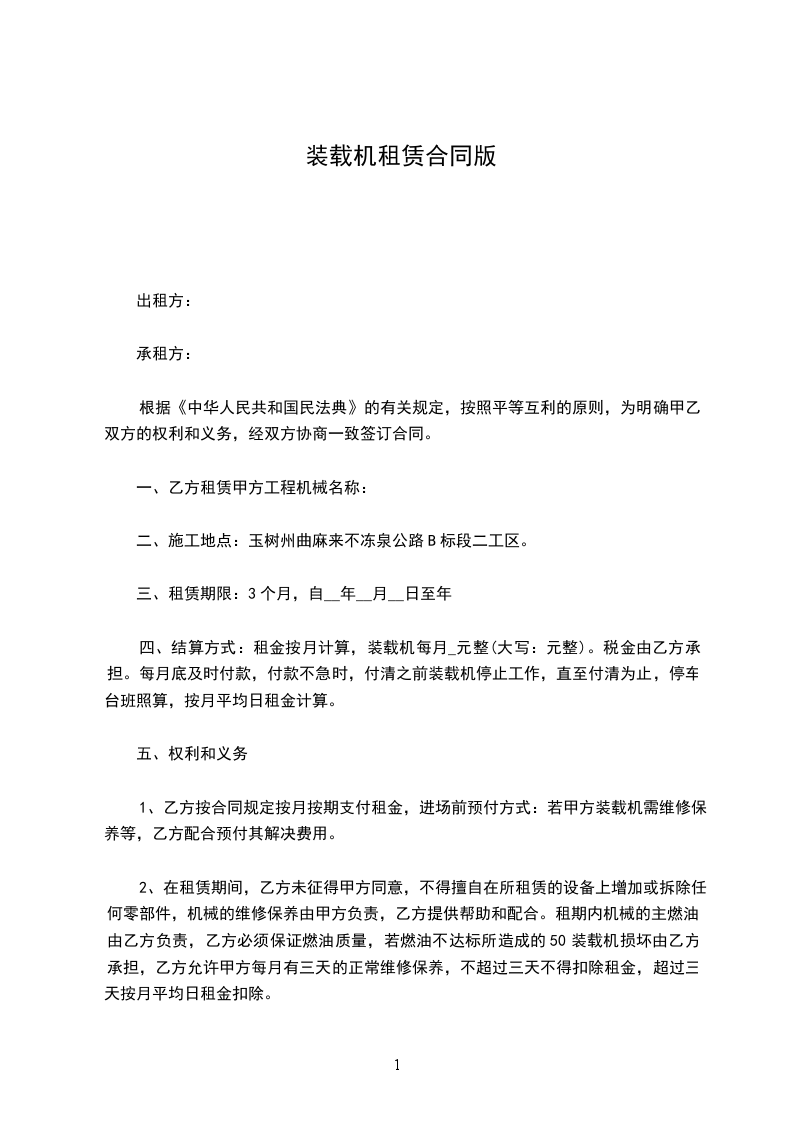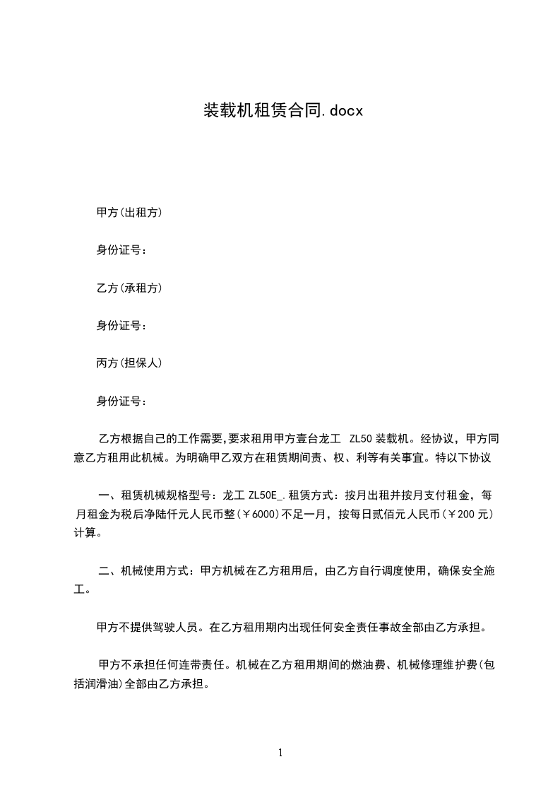 甲乙双方本着平等互利的原则,甲方现租乙方装载机壹部,现将租赁事宜达成以下协议,望双方共同遵守。