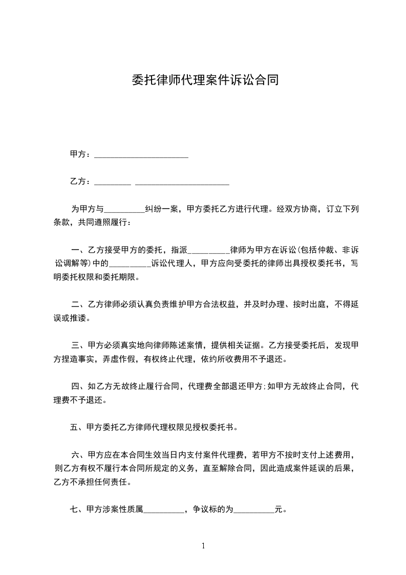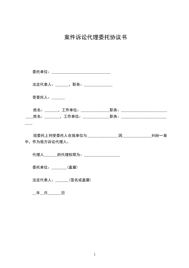 甲方因________一案,委托乙方代理,经双方协议,订立本合同。