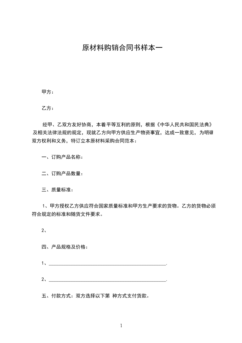经甲、乙双方友好协商,本着平等互利的原则,根据《中华人民共和国民法典》及相关法律法规的规定,现就乙方向甲方供应生产物资事宜,达成一致意见,为明确双方权利和义务,特订立本原材料采购合同范本: