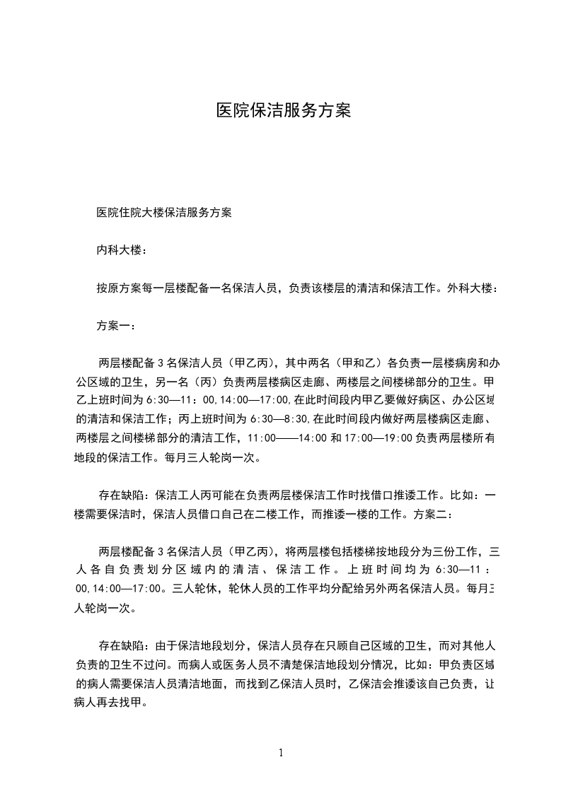 1、服务范围:1—4楼公共区域,走廊、卫生间、玻璃、3楼的病房和楼前楼后的院子。