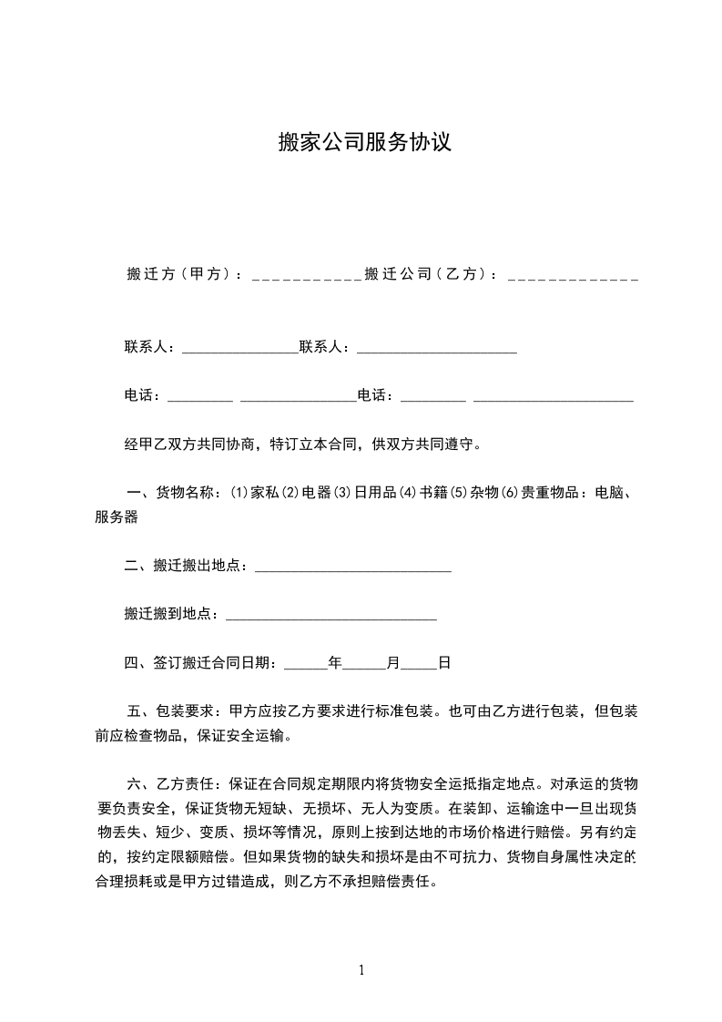 搬迁方(甲方):___________搬迁公司(乙方):_____________