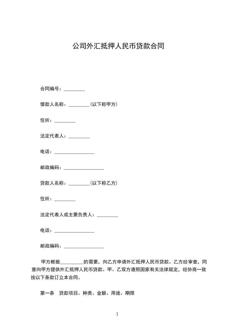 甲方根据__________的需要,向乙方申请外汇抵押人民币贷款。乙方经审查,同意向甲方提供外汇抵押人民币贷款。甲、乙双方遵照国家有关法律规定,经协商一致,按以下条款订立本合同。