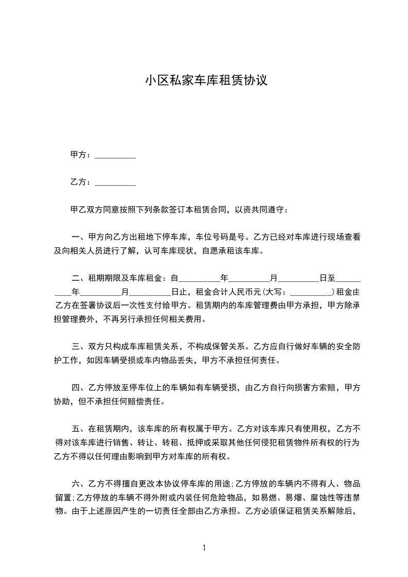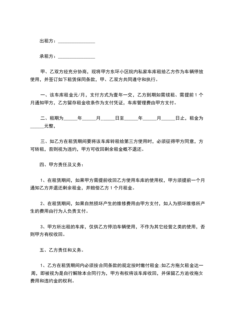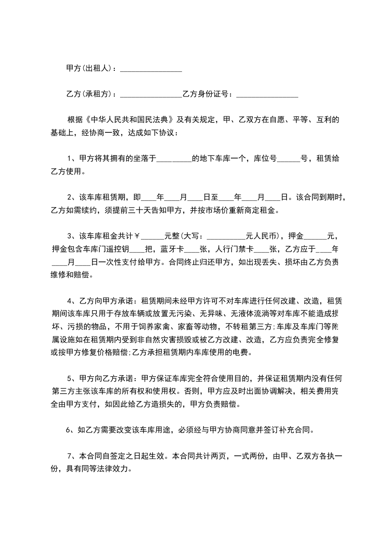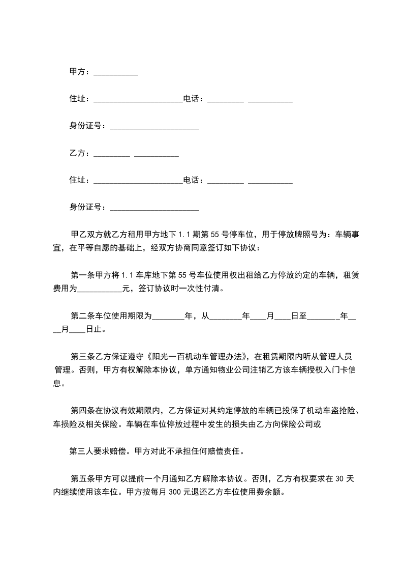 第一条甲方将1.1车库地下第55号车位使用权出租给乙方停放约定的车辆,租赁费用为___________元,签订协议时一次性付清。