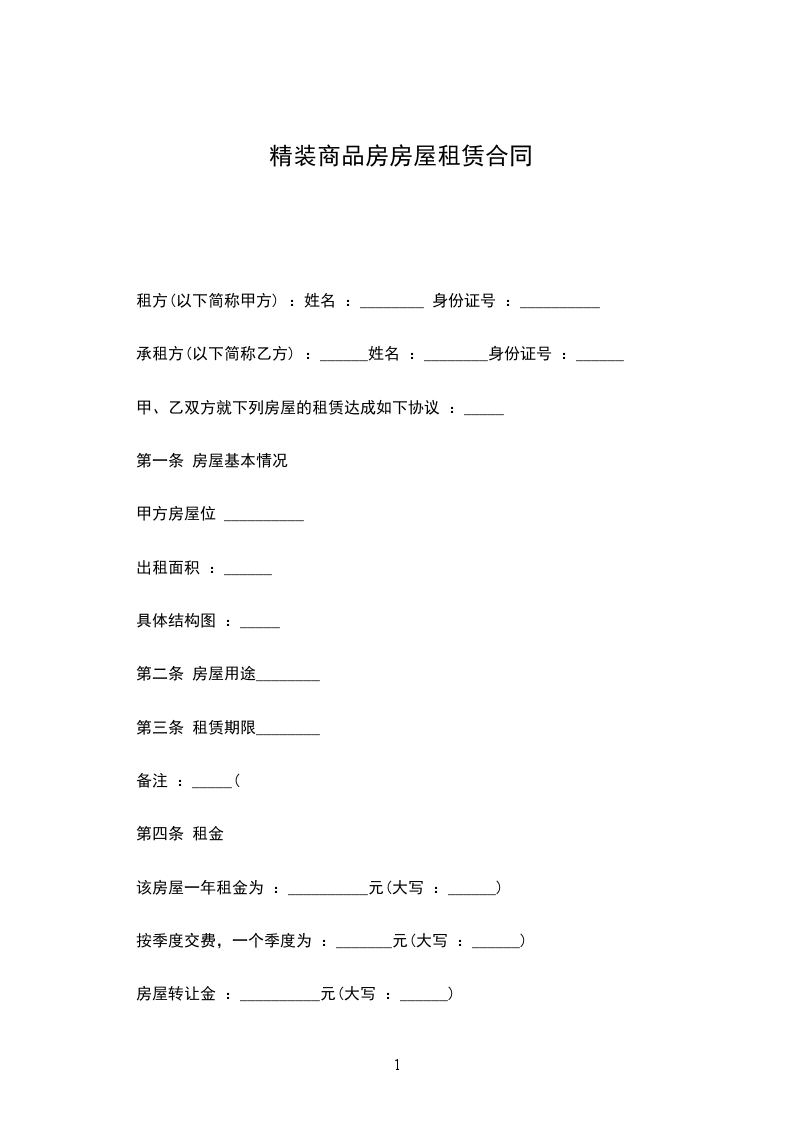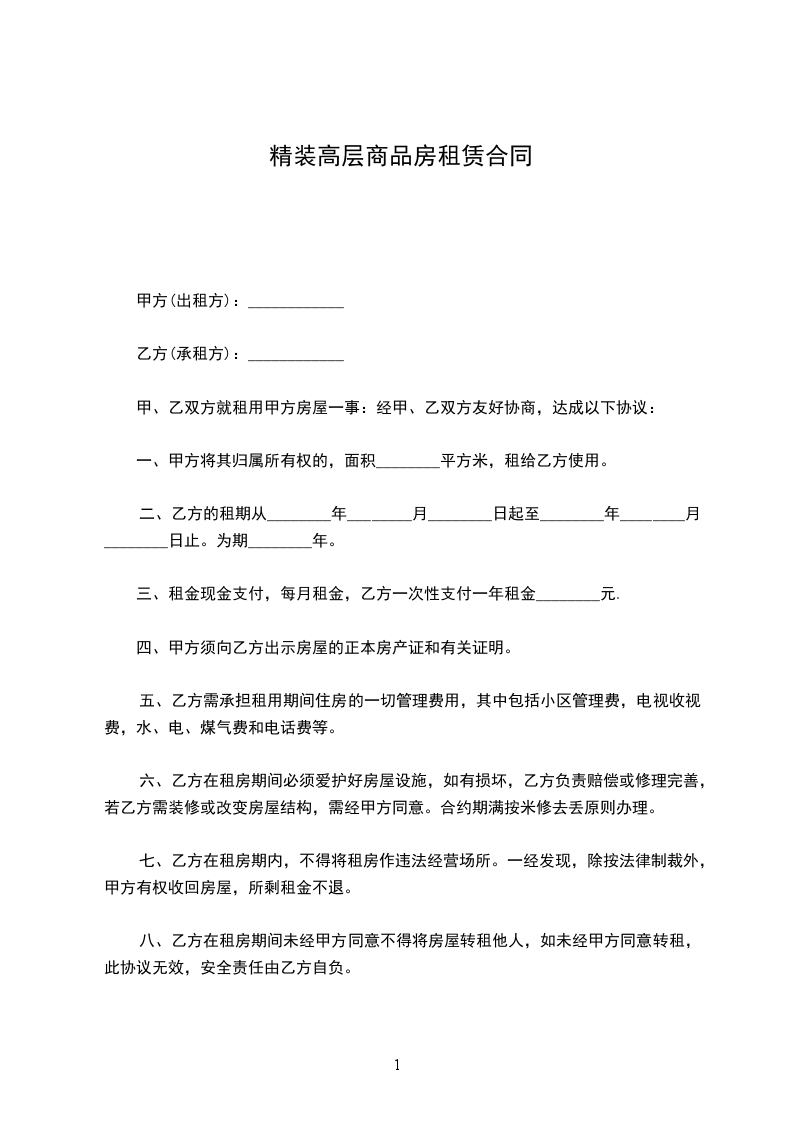 一、以上房屋每月租金为_____元,乙方需一次性提前(即下个租赁期开始前的月末30日)缴纳_____个月的房屋租金共计_____元(大写),方可入住。