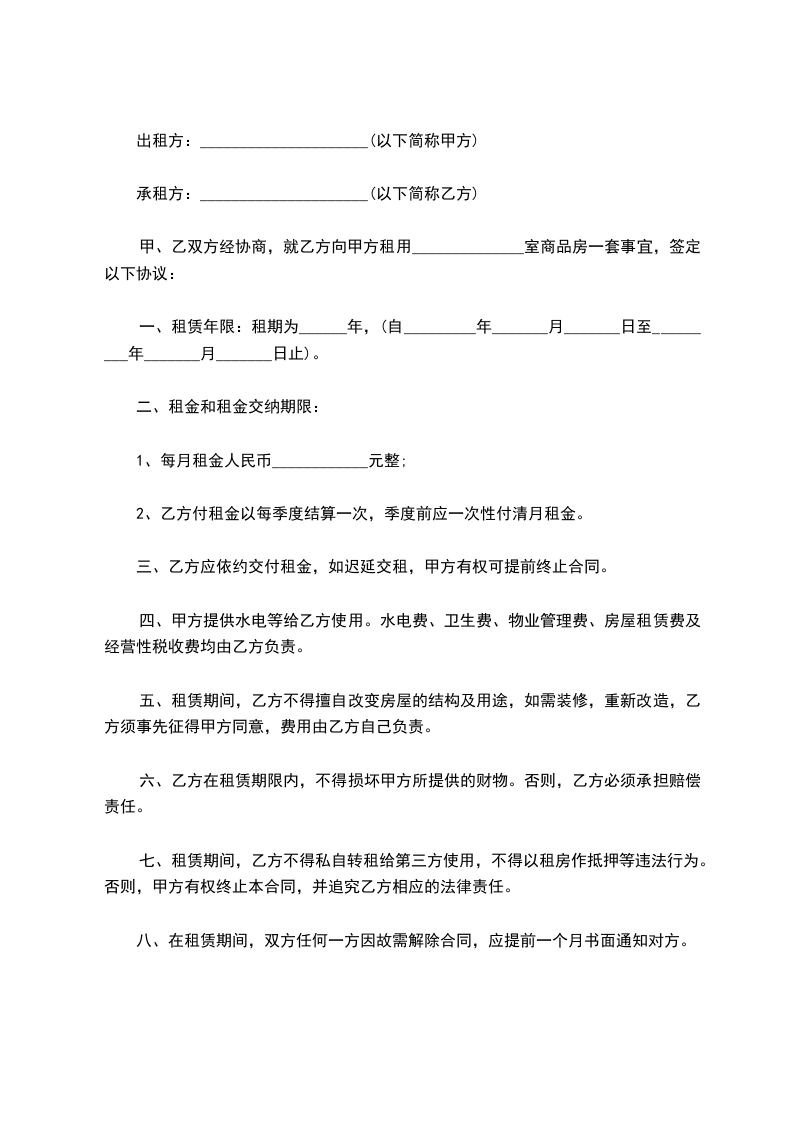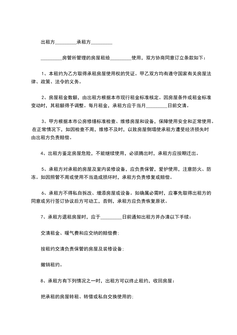 经甲乙双方协商,甲方同意将自己的位于_____的房屋_____间_____平方米,租给乙方使用。并依照协商内容制订租赁协议如下: