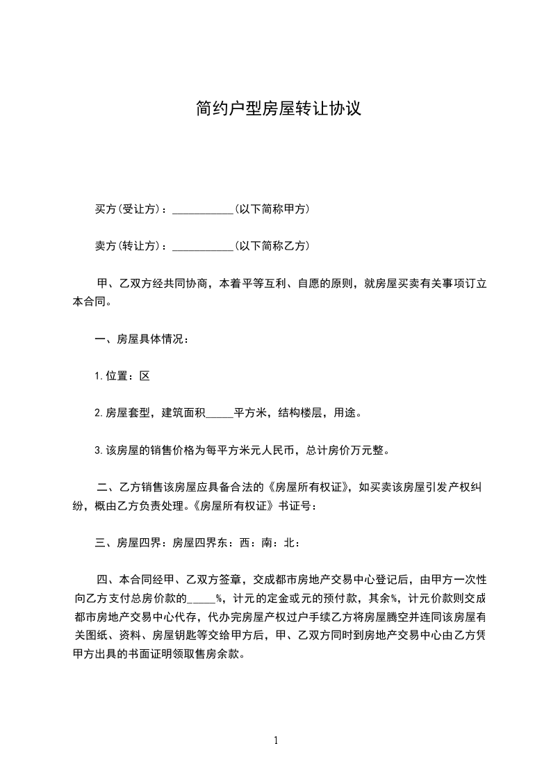 1、乙方看好该房后,与甲方签订房屋协议转让合同,首次支付甲方总房款的70%,计45万元,而后甲方办理过户更名手续。