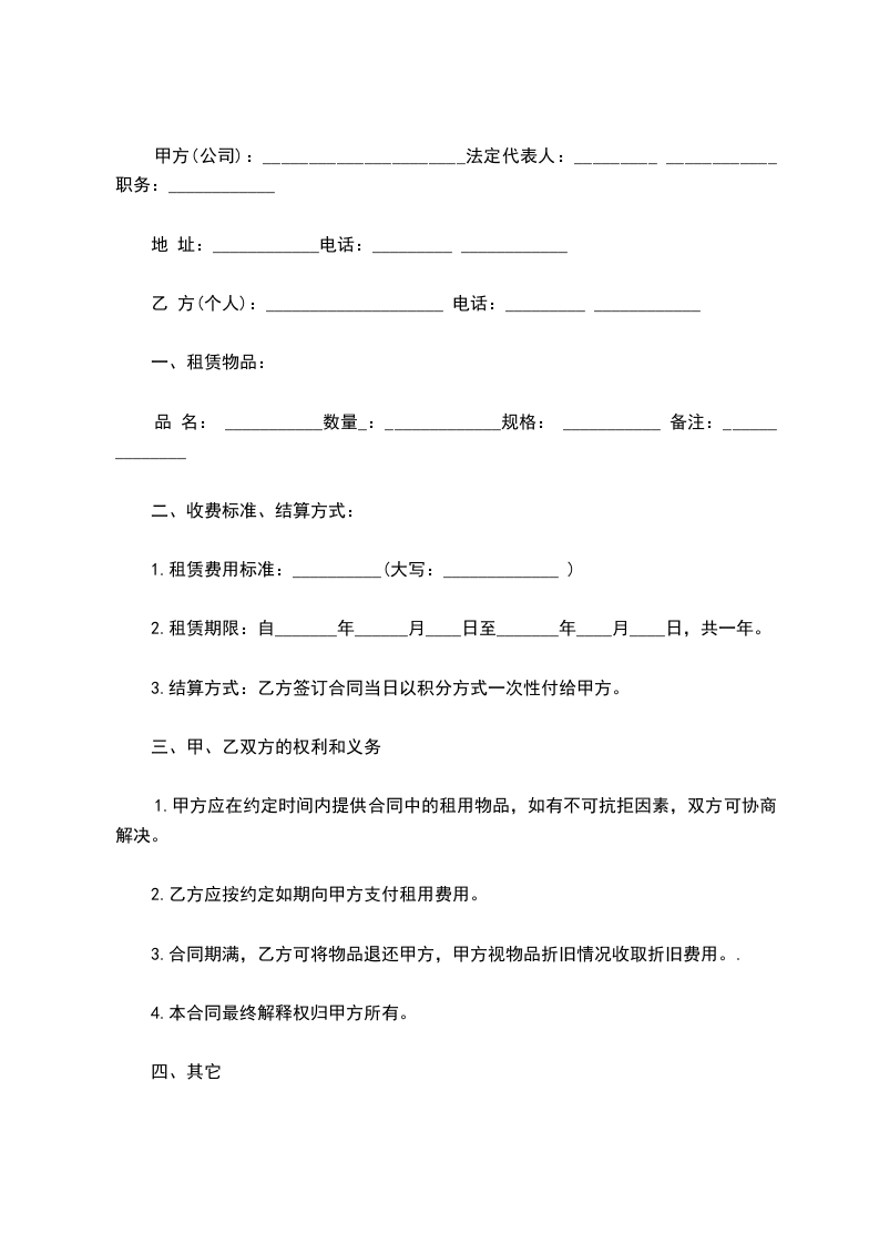 3.合同期满,乙方可将物品退还甲方,甲方视物品折旧情况收取折旧费用。.