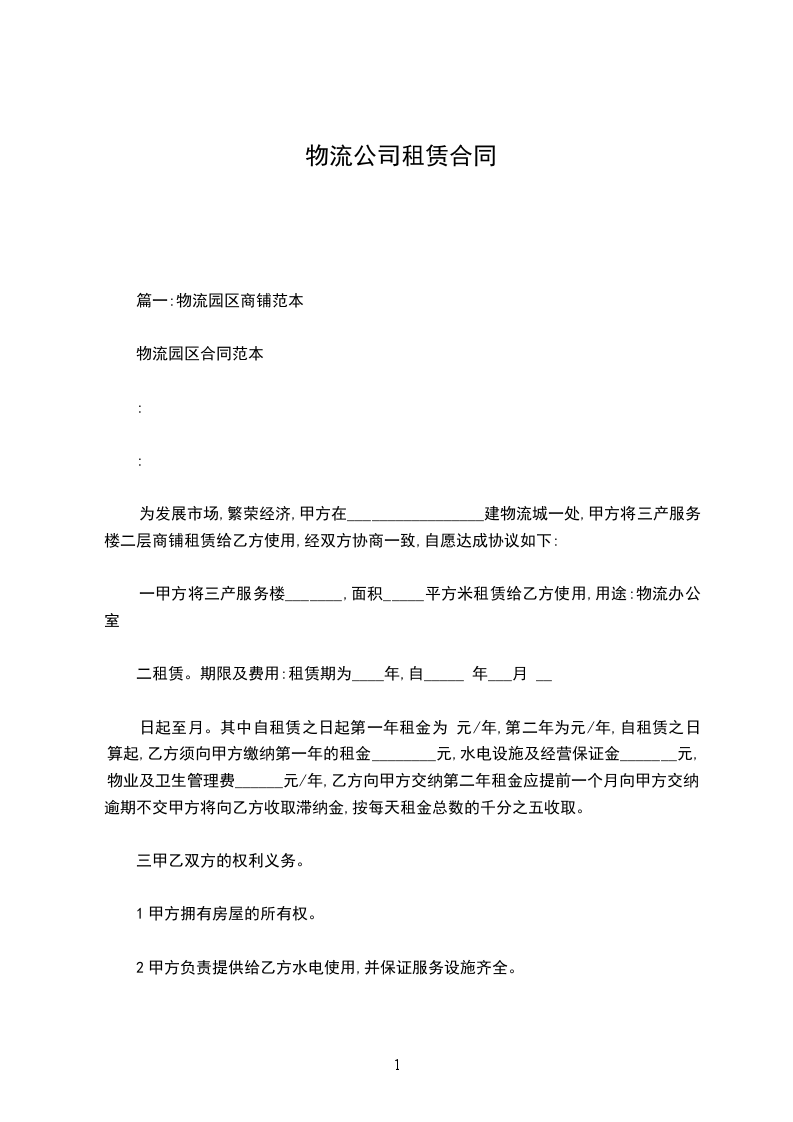 2.租赁期限:自_______年______月____日至_______年____月____日,共一年。