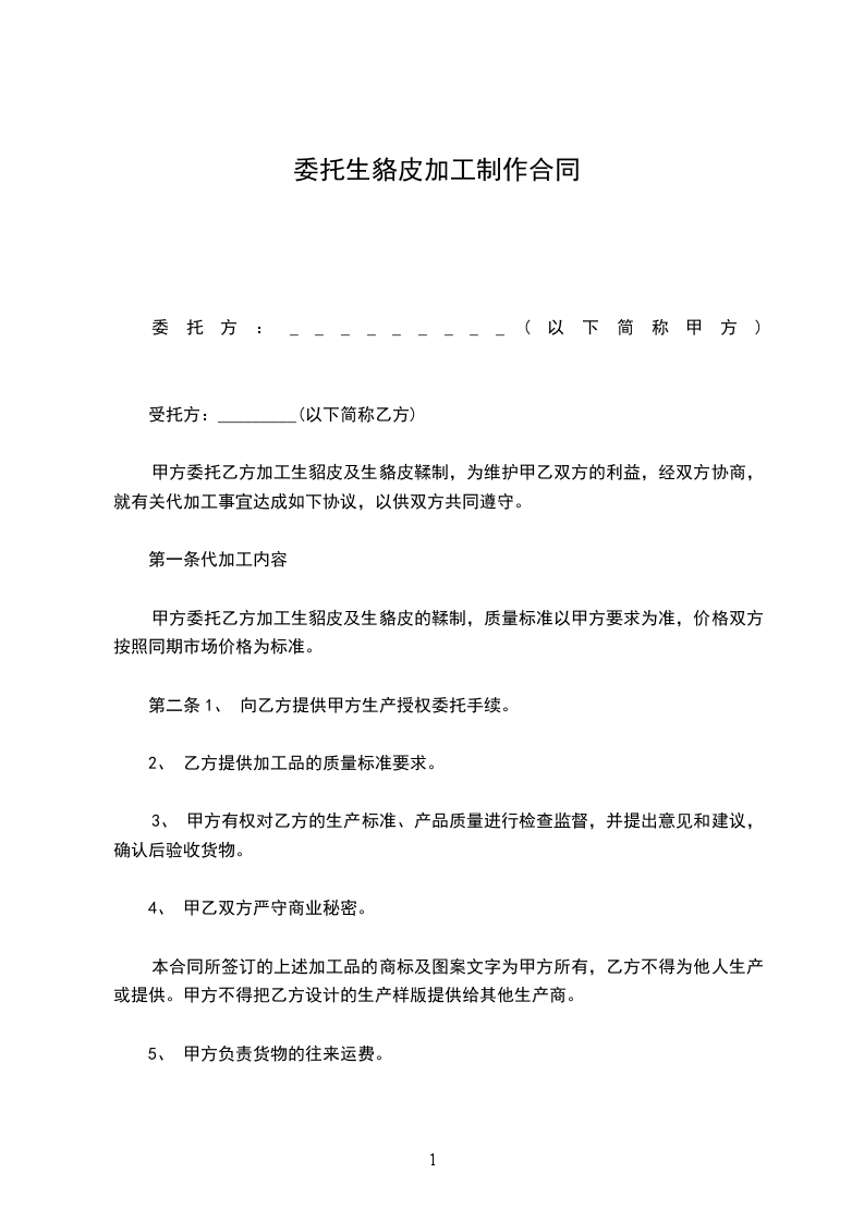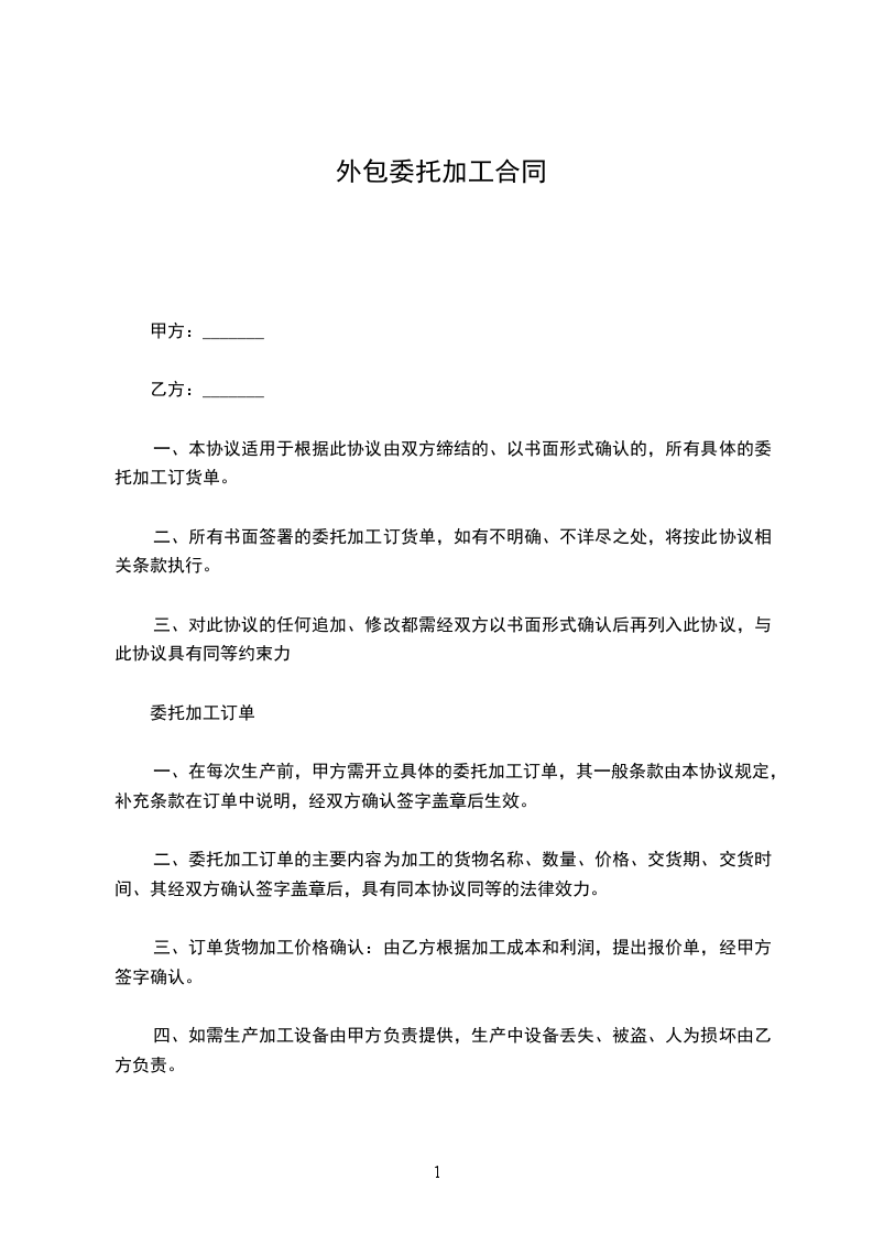 甲方委托乙方为其加工系列产品,加工数量、款式(或开发信息)、标准、质量要求由甲方提供,价格由双方协商确定,另在订单上详述。