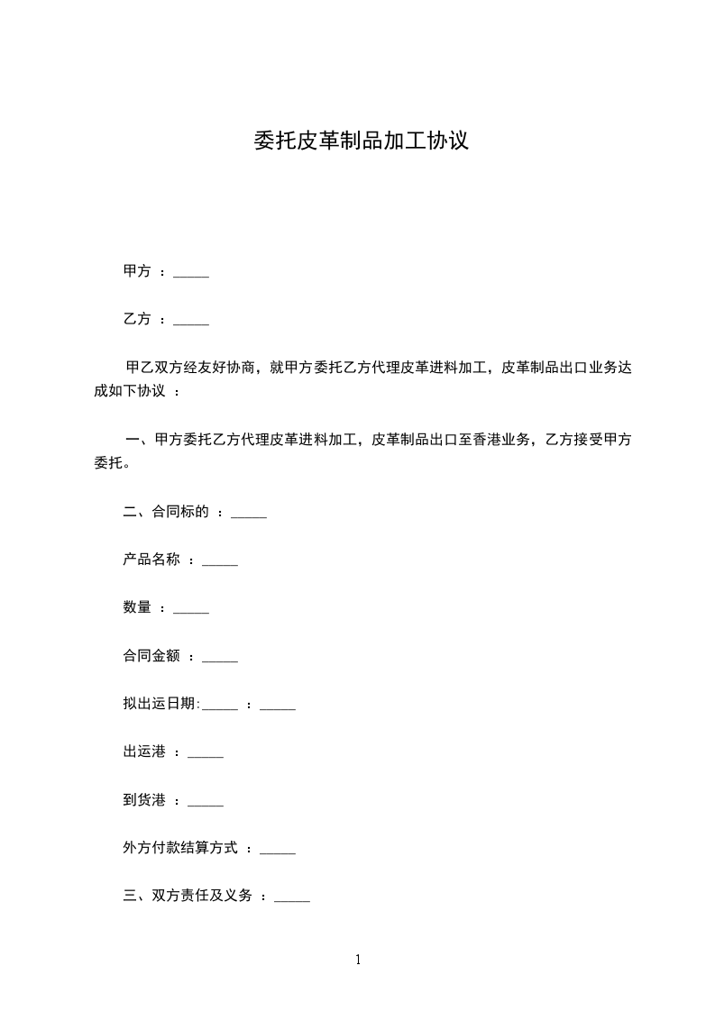 甲方委托乙方加工__________________产品,为维护甲乙双方的利益,经双方协商,就有关代加工事宜达成如下协议,以供双方共同遵守。