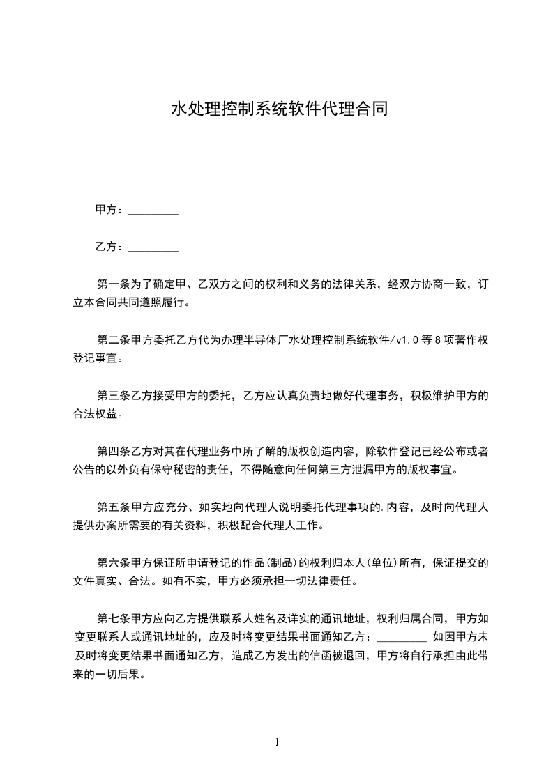 第二条甲方委托乙方代为办理半导体厂水处理控制系统软件/v1.0等8项著作权登记事宜。