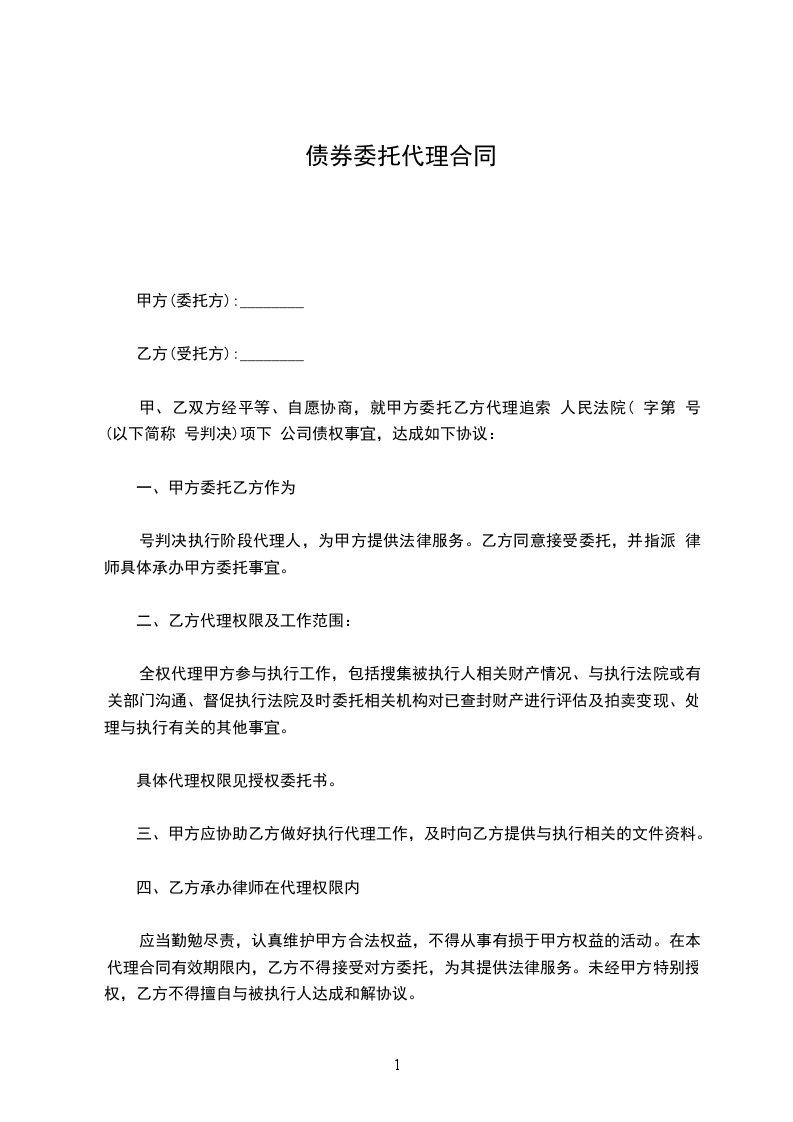 甲、乙双方经平等、自愿协商,就甲方委托乙方代理追索 人民法院( 字第 号 (以下简称 号判决)项下 公司债权事宜,达成如下协议: