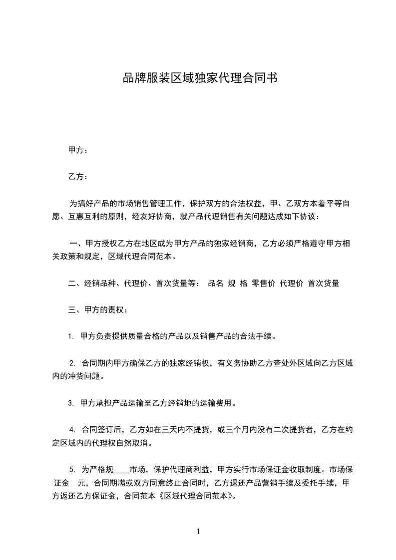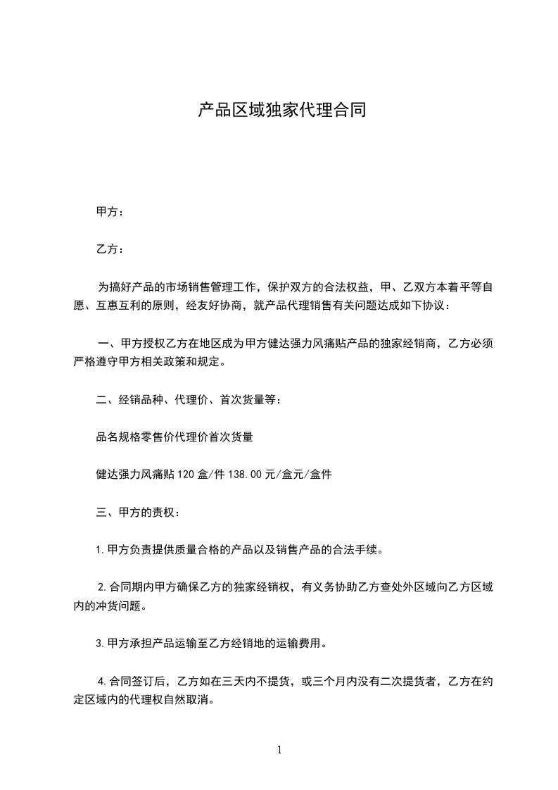 1、乙方按甲方的全国统一出厂价提货,乙方首次配货不少于壹拾万元,由乙方自选补配货,换货率一律为100%,甲方配衬品以成本价给乙方供货,甲方不负责退换货。