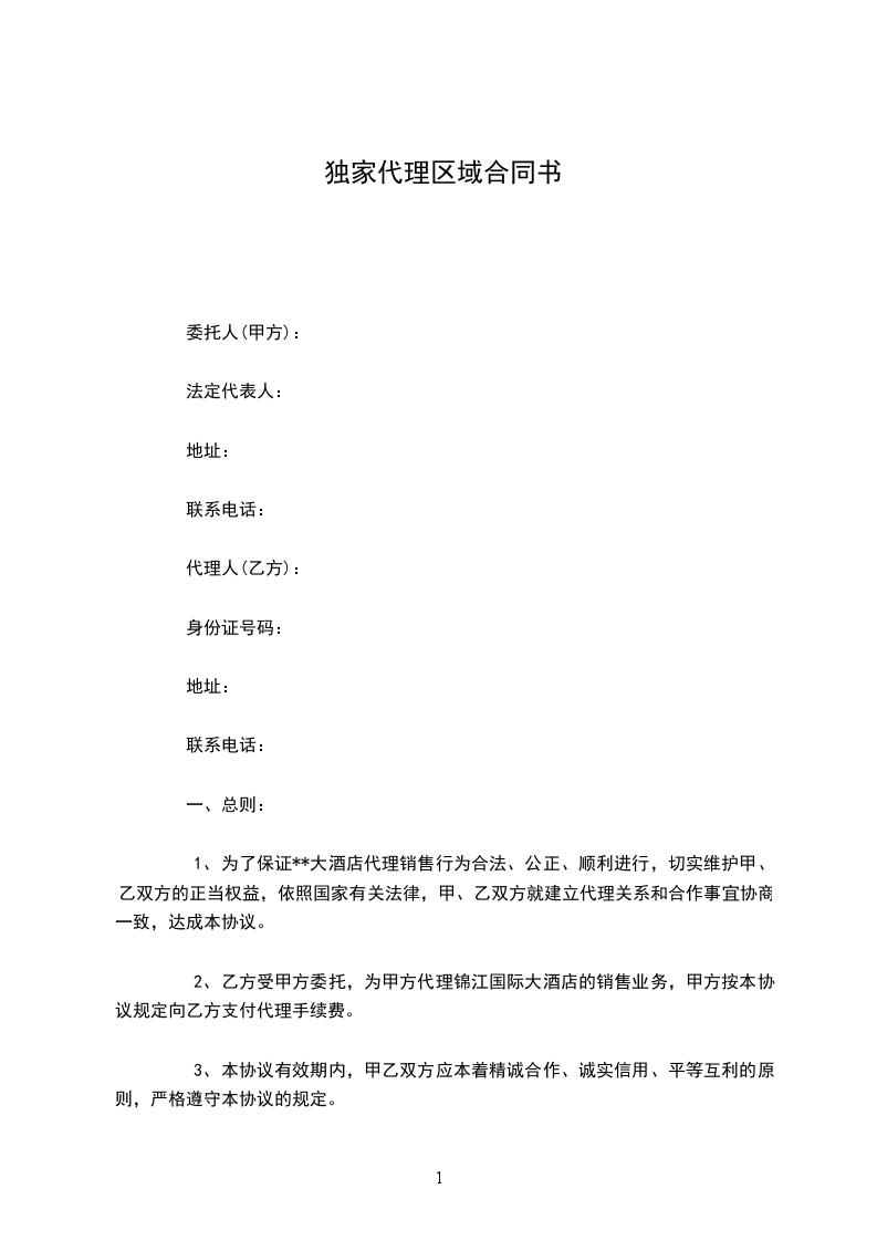 甲方授权乙方在地点________,以开设发展特许经营代理加盟商的形式总代理经营甲方注册并拥有商标权的____品牌系列服装。