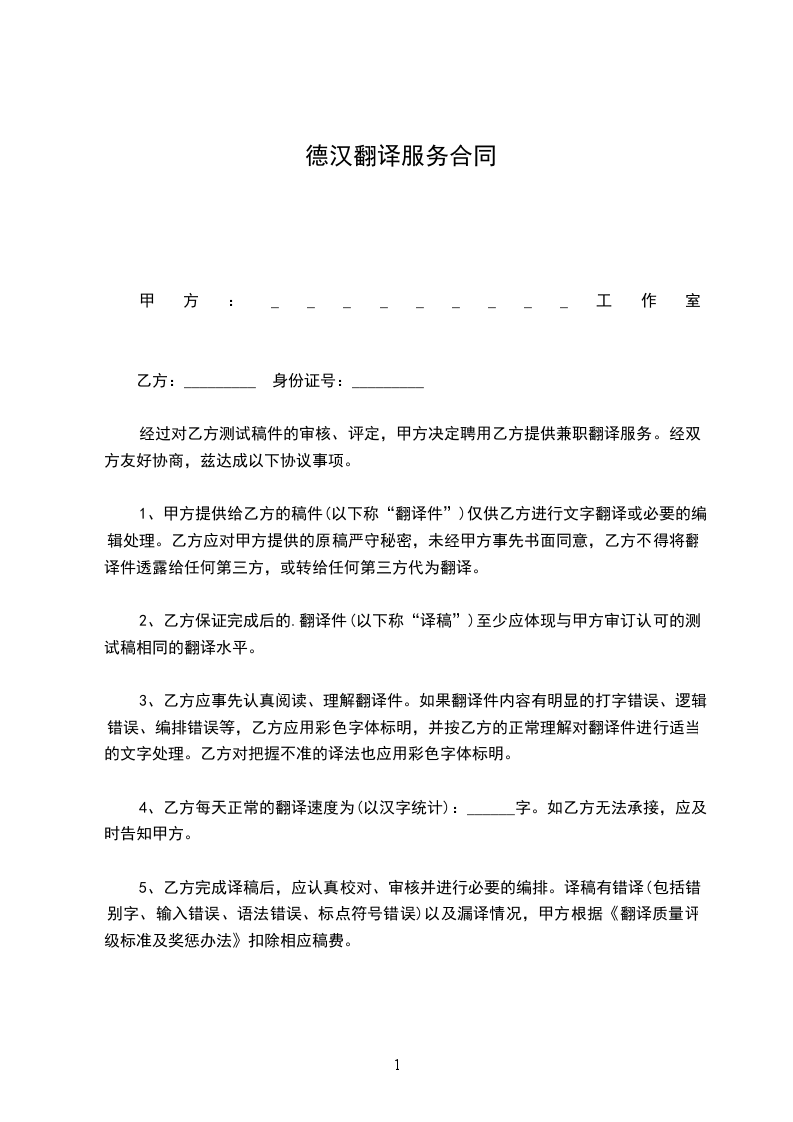经过对乙方测试稿件的审核、评定,甲方决定聘用乙方提供兼职翻译服务。经双方友好协商,兹达成以下协议事项。