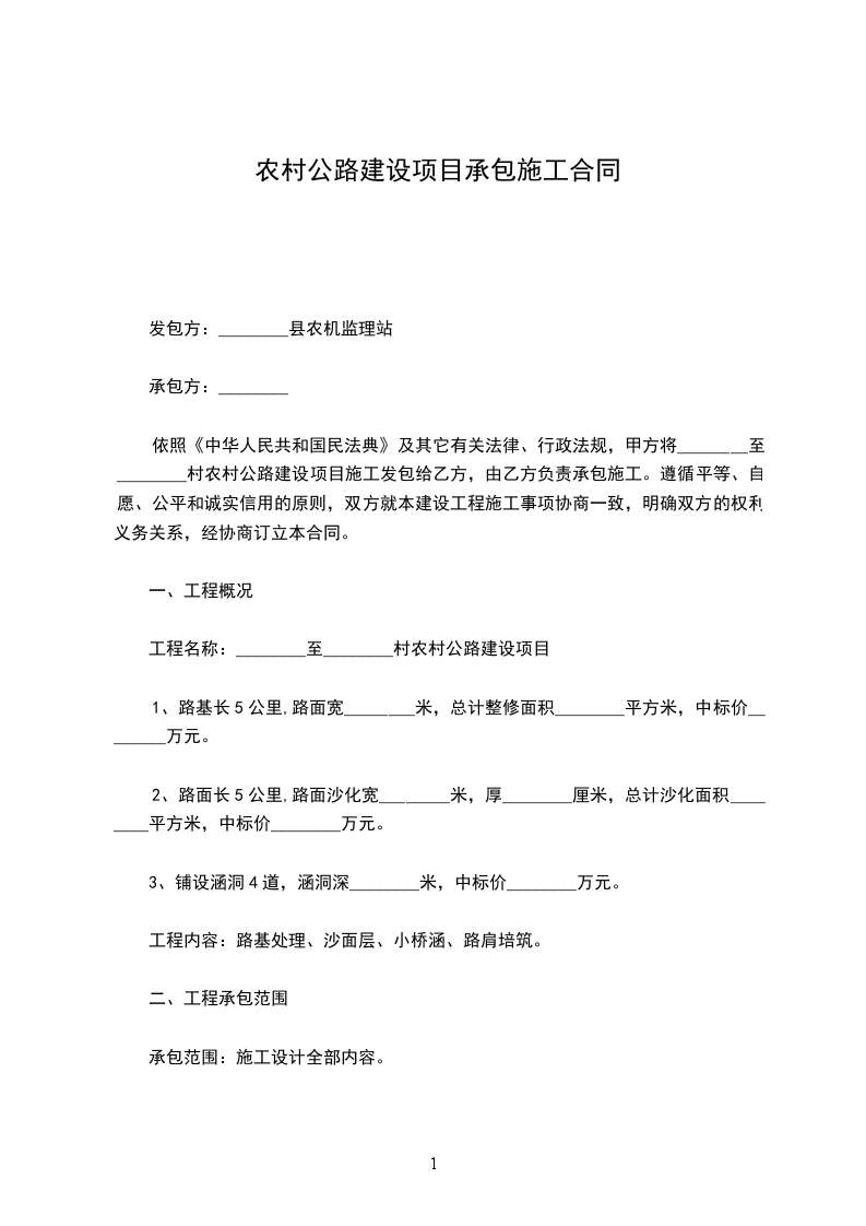 工程名称:________至________村农村公路建设项目