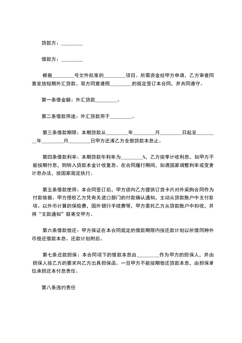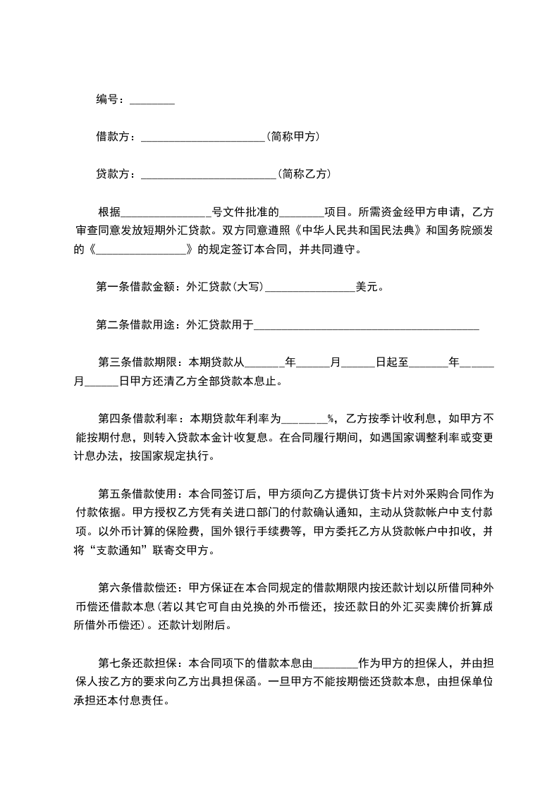 根据_________号文件批准的_________项目。所需资金经甲方申请,乙方审查同意发放短期外汇贷款。双方同意遵照_________的规定签订本合同,并共同遵守。