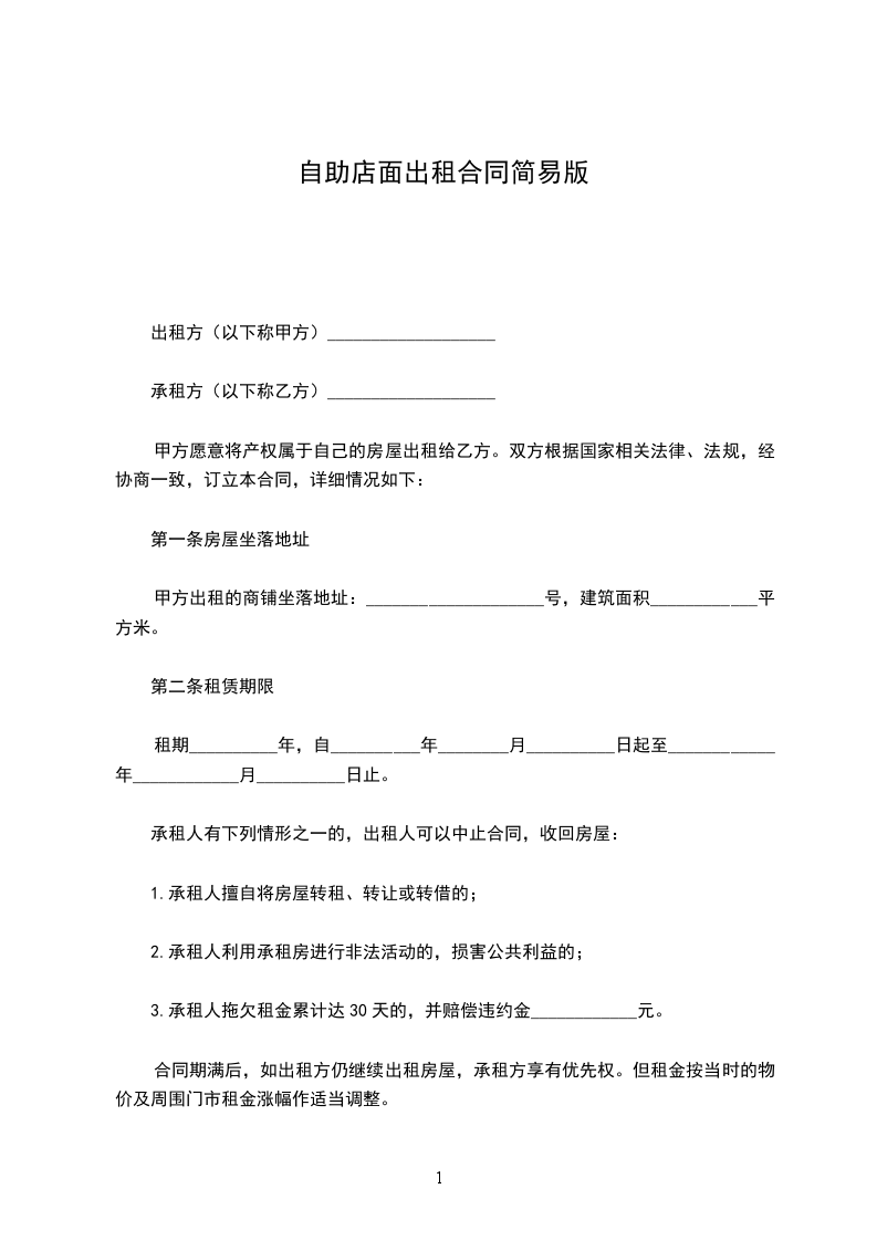 一、租期:自_______年______月______日起至_______年______月______日止 ,共计______年。