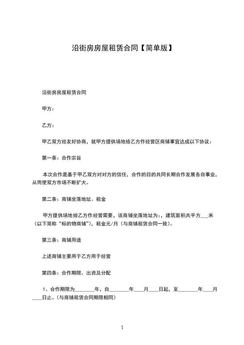 1、合作期限为____年,自_____年____月____日起,至_____年______月____日止。(与商铺租赁合同期限相同)