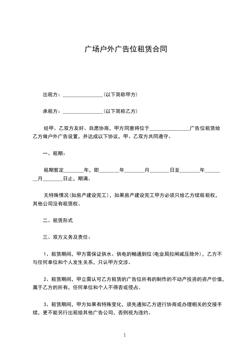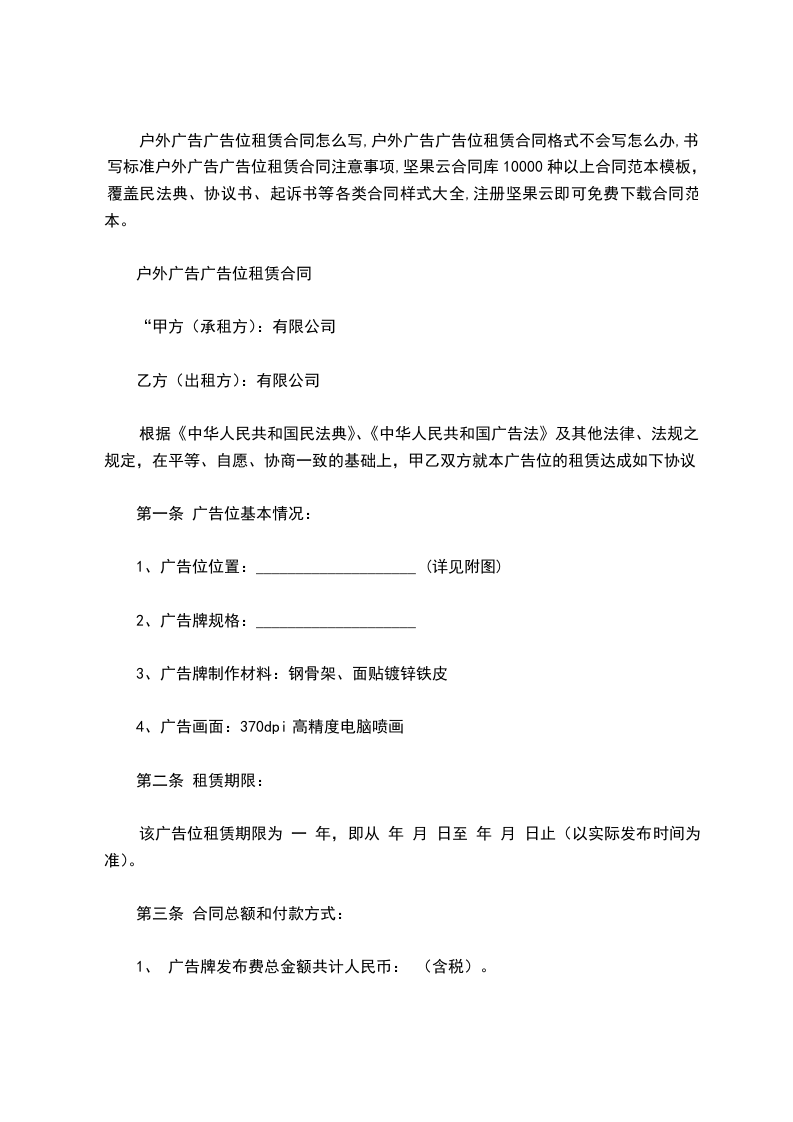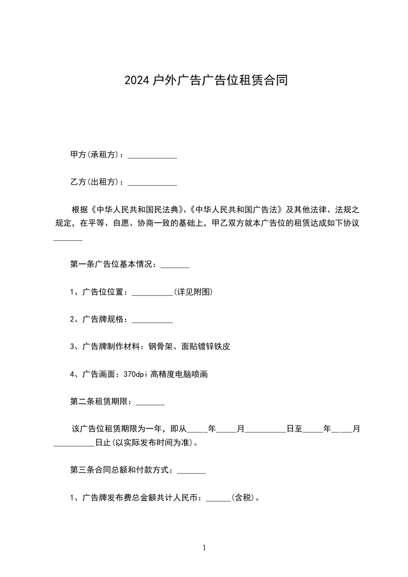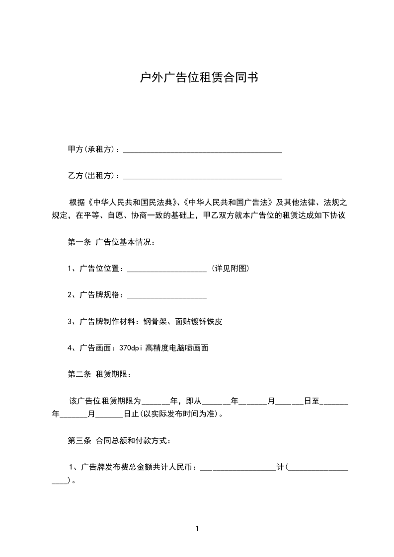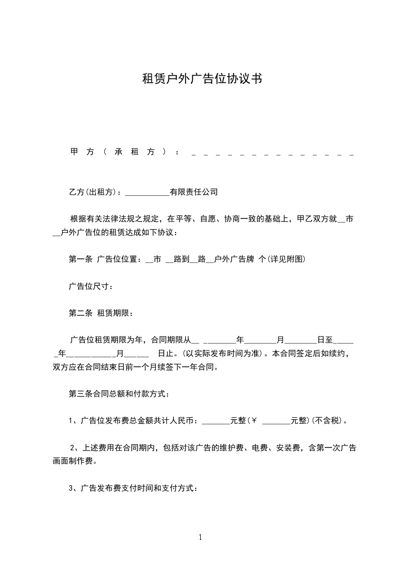 第一条 广告位位置:__市 __路到__路__户外广告牌 个(详见附图)