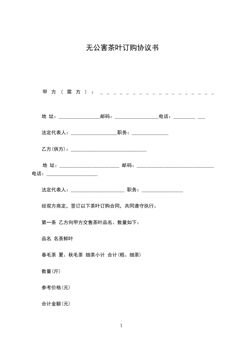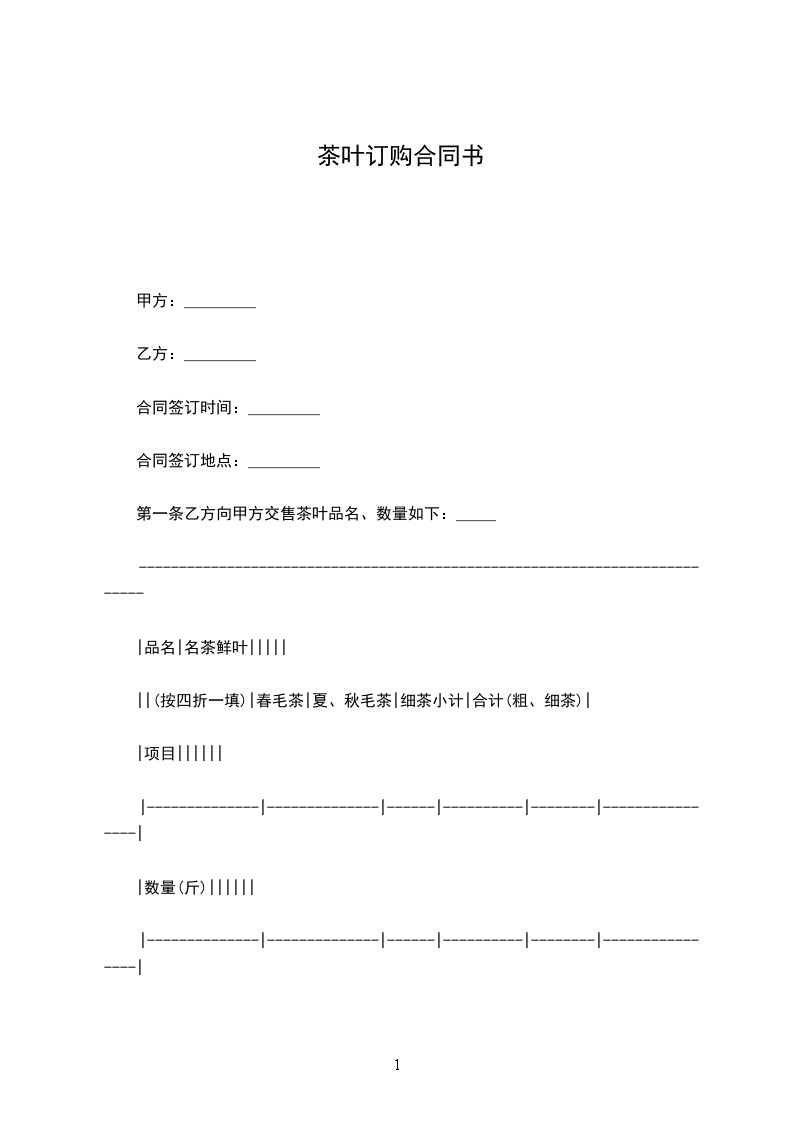 第一条 乙方向甲方交售茶叶品名、数量如下: