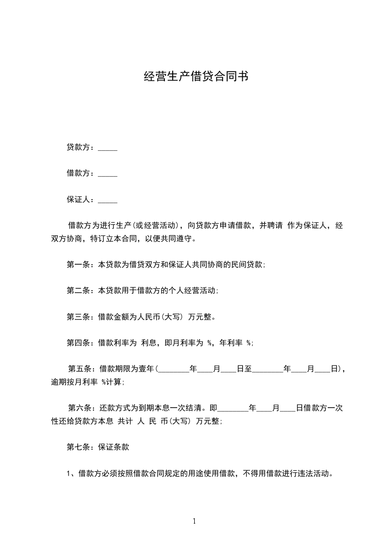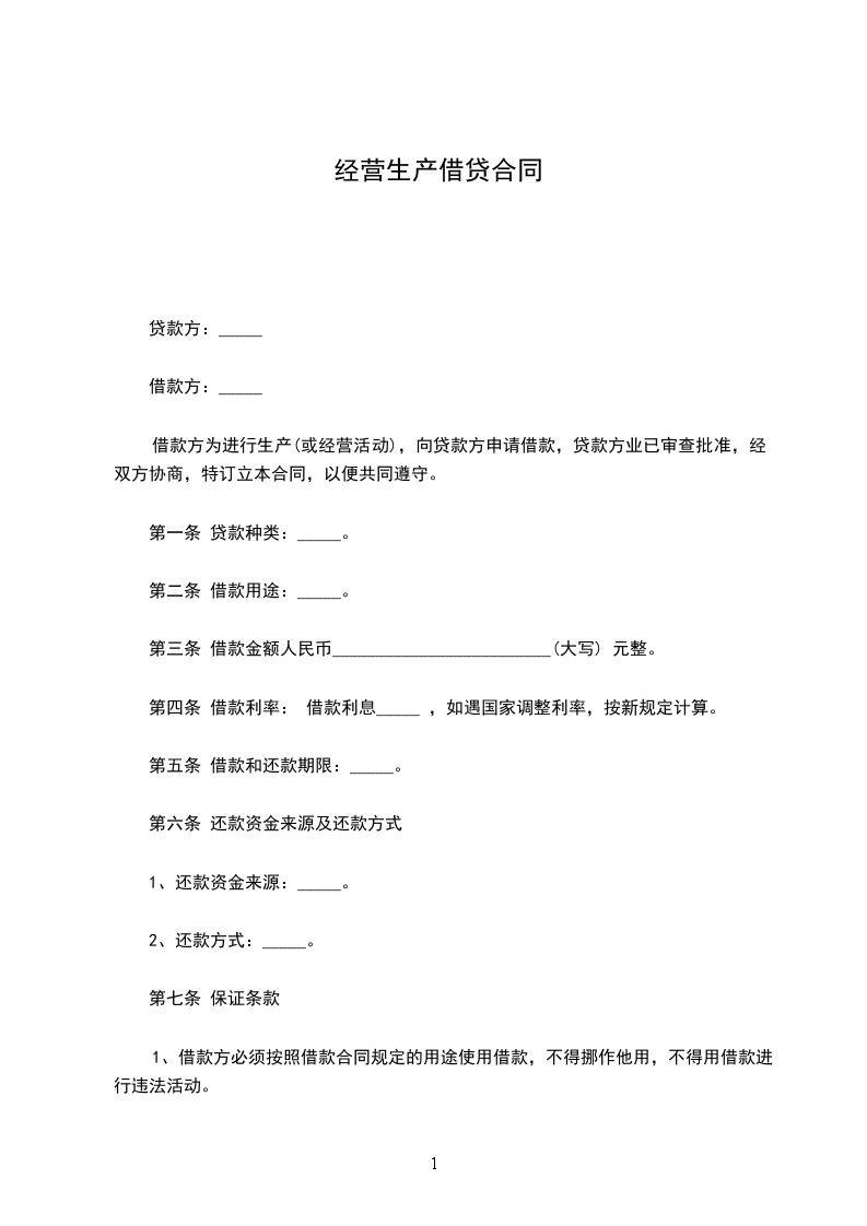 第一条 贷款种类:_____。