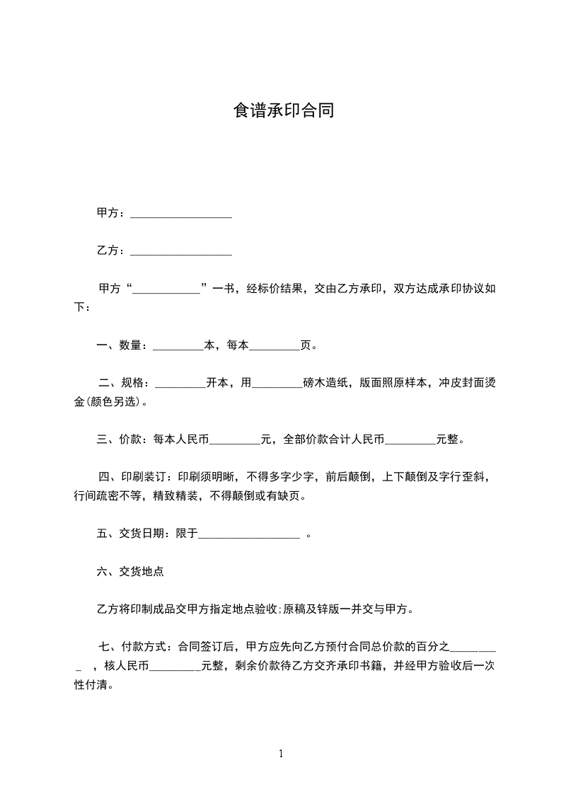 七、付款方式:合同签订后,甲方应先向乙方预付合同总价款的百分之_________ ,核人民币_________元整,剩余价款待乙方交齐承印书籍,并经甲方验收后一次性付清。