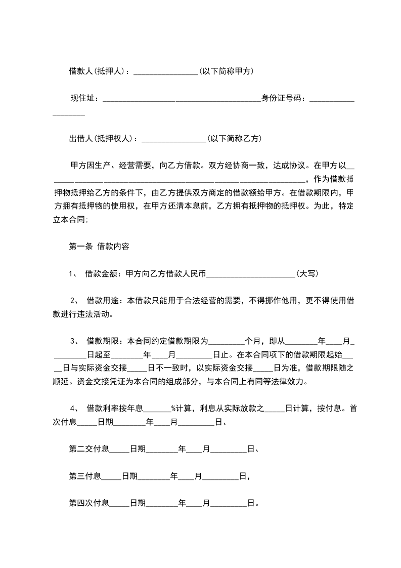 抵 押 人:______________企业性质:_____________