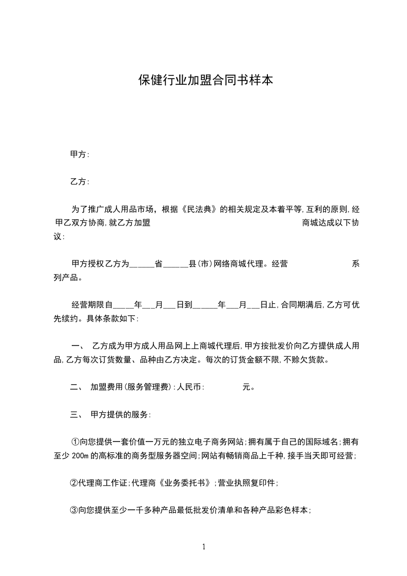 为了推广成人用品市场,根据《民法典》的相关规定及本着平等,互利的原则,经甲乙双方协商,就乙方加盟 商城达成以下协议: