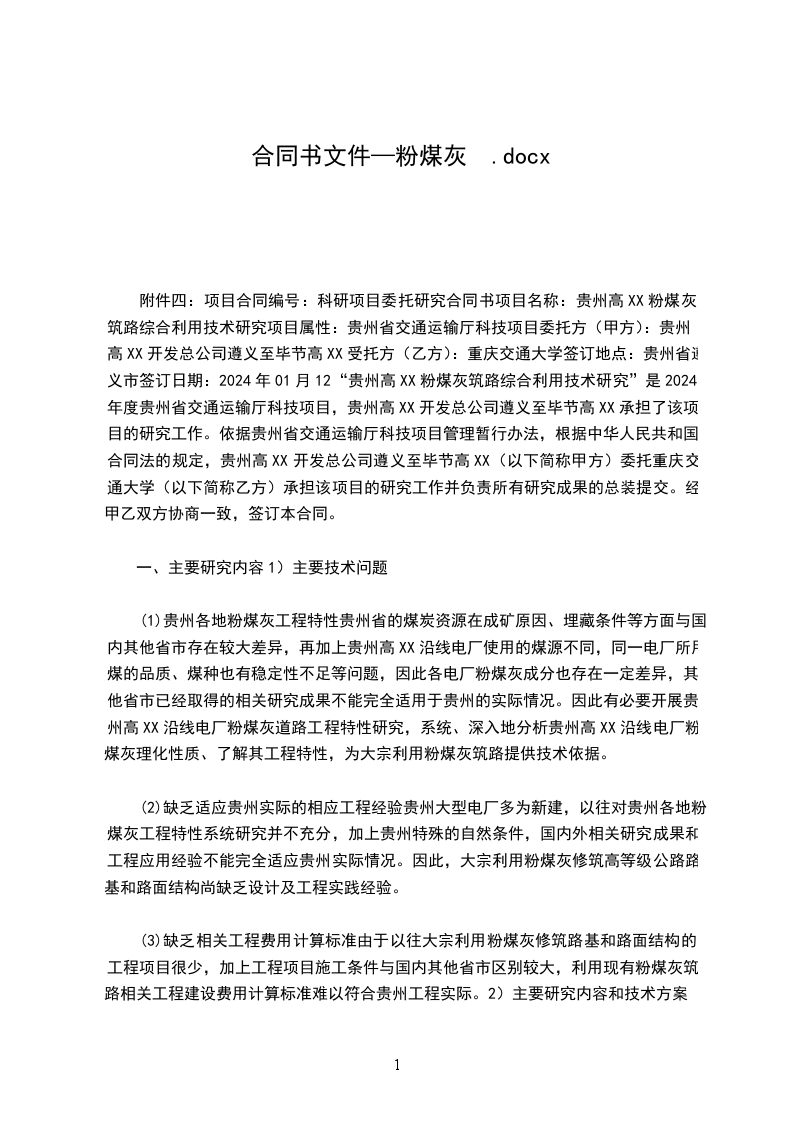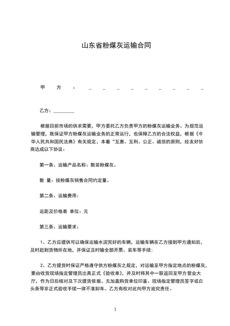第一条、运输产品名称:散装粉煤灰。