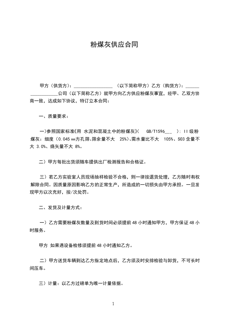 数 量:按粉煤灰销售合同约定量。