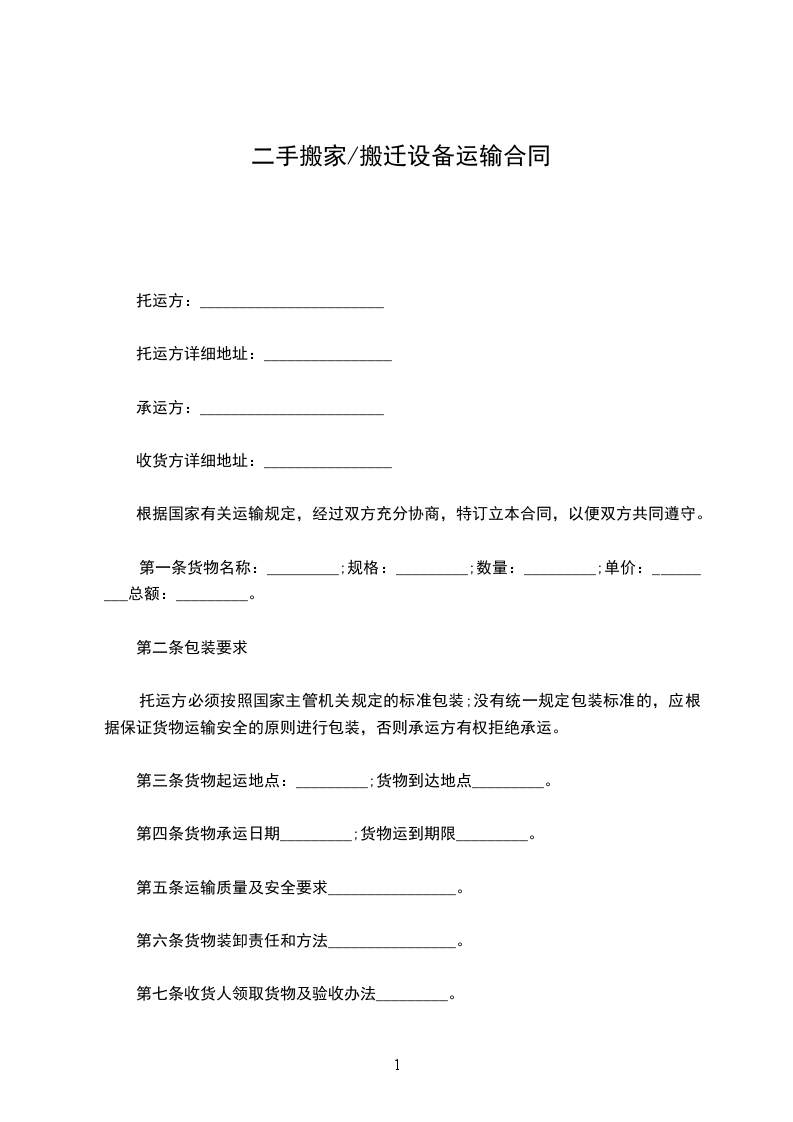 2、甲方若不跟人押车,卸货地址务必填清,货物包装必须完好。