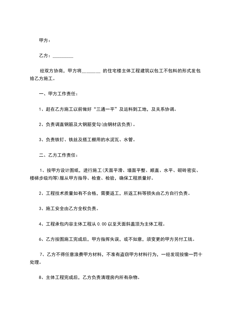 经双方协商,甲方将________ 的住宅楼主体工程建筑以包工不包料的形式发包给乙方施工。