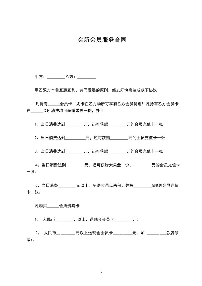 凡持有______会员卡,凭卡在乙方场所可享有乙方会员优惠! 凡持有乙方会员卡在______会所消费均可获赠果盘一份,并且