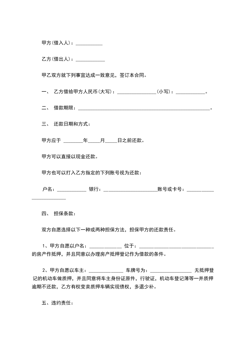 一、 乙方借给甲方人民币(大写):________________(小写):____________。