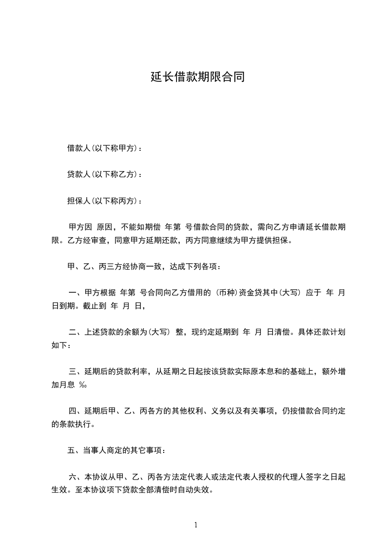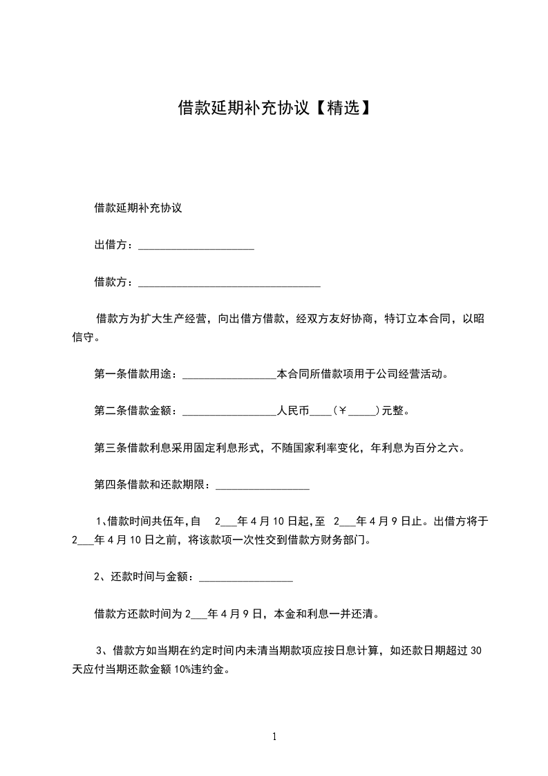 一、乙方根据原合同应向甲方借用的资金借款人民币_____元(大写,应于截止到_____年_____月_____日止,上述借款未偿还金额写:_____元整,现约定延期到_____年_____月次性还清。