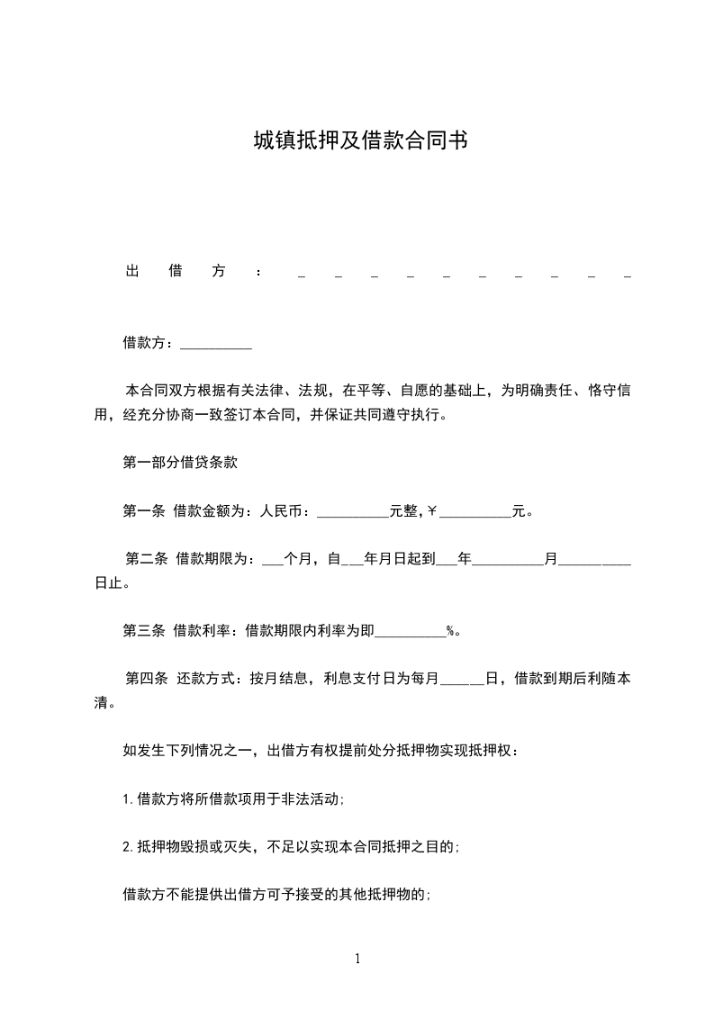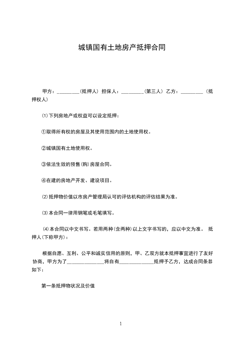 第一条 乙方以“抵押物清单”()所列财产或权利设立抵押。