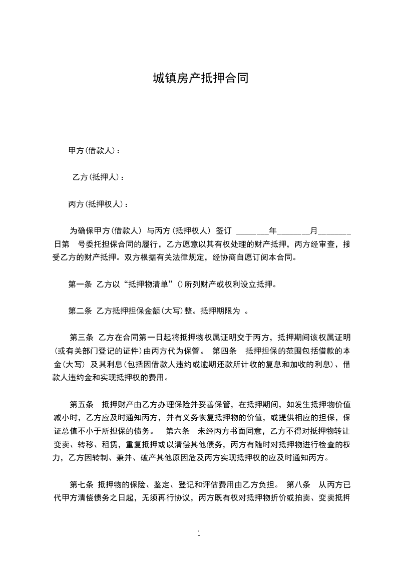 为确保甲方(借款人) 与丙方(抵押权人) 签订 ________年________月________日第 号委托担保合同的履行,乙方愿意以其有权处理的财产抵押,丙方经审查,接受乙方的财产抵押。双方根据有关法律规定,经协商自愿订阅本合同。