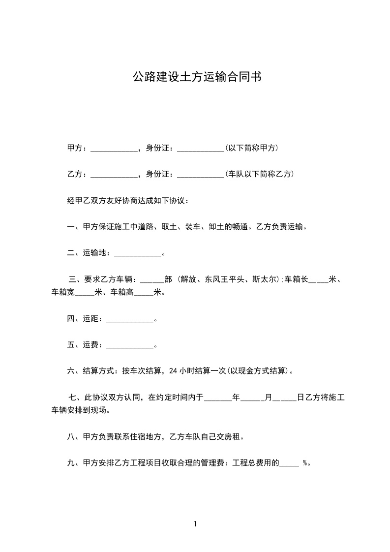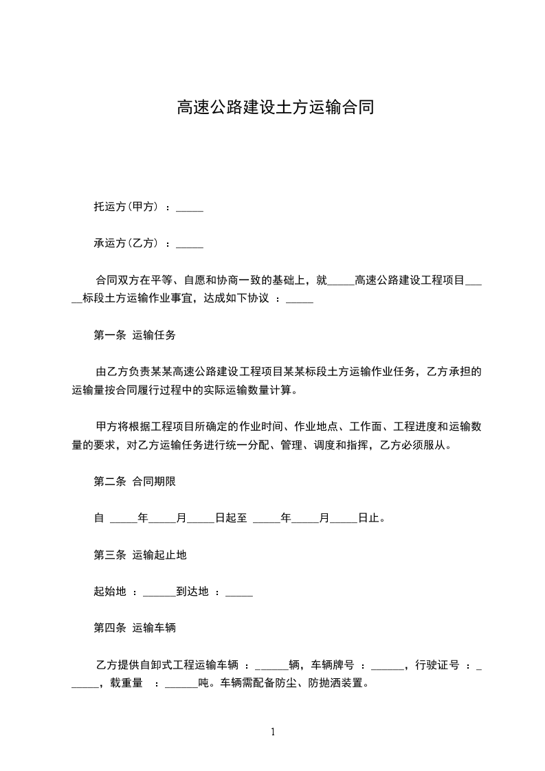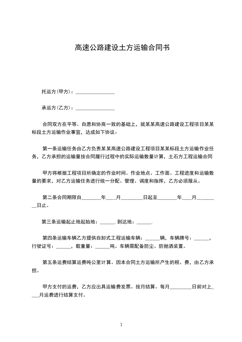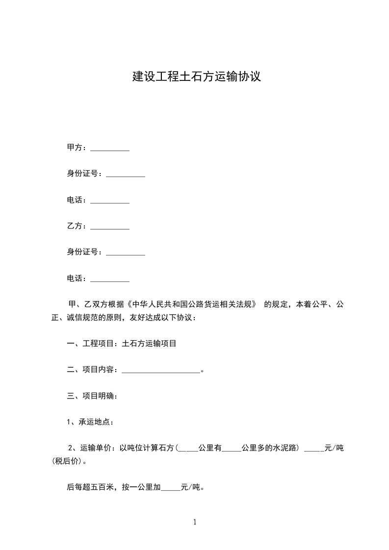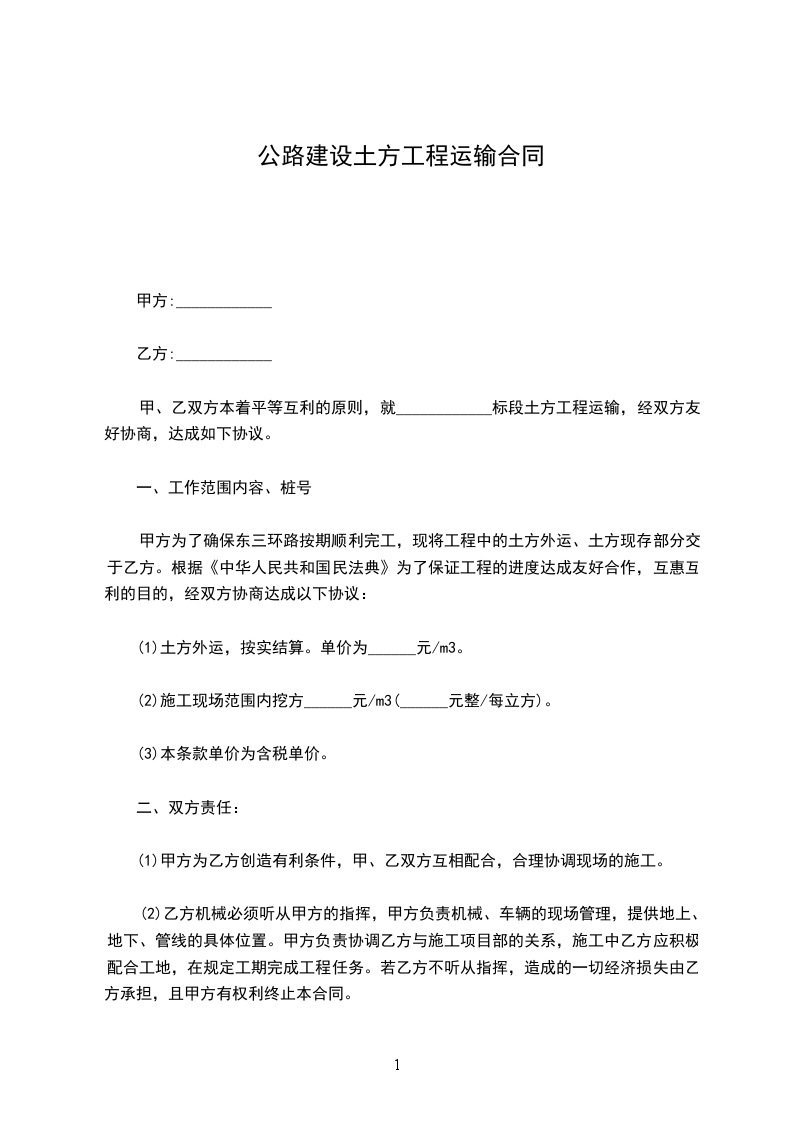 甲、乙双方本着平等互利的原则,就____________标段土方工程运输,经双方友好协商,达成如下协议。