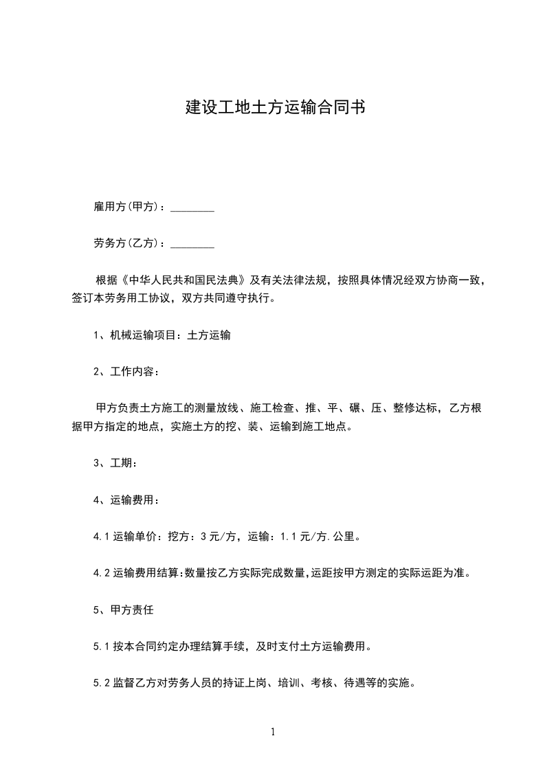 (3)乙方负责解决土方的运输过程中的倒土场地、修复拉土便道,严禁运输车辆在施工红线以外,破坏农田地及村庄道路。若因拉土车辆造成农田及村庄道路的破坏,由乙方自行负责。若因拉土车辆责任