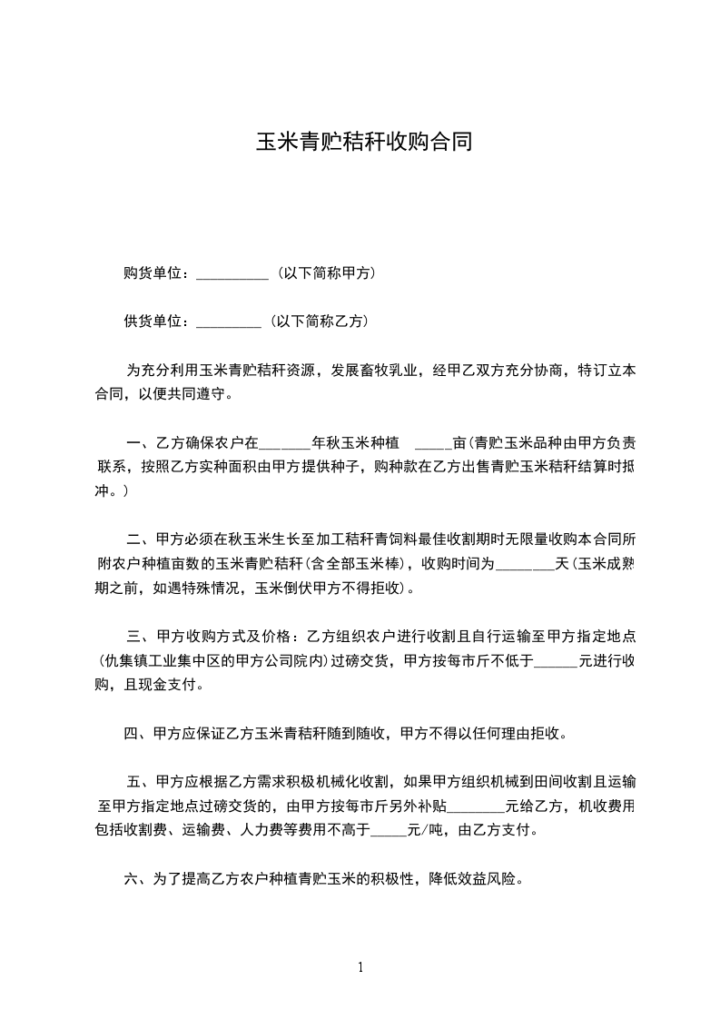 为充分利用玉米青贮秸秆资源,发展畜牧乳业,经甲乙双方充分协商,特订立本合同,以便共同遵守。