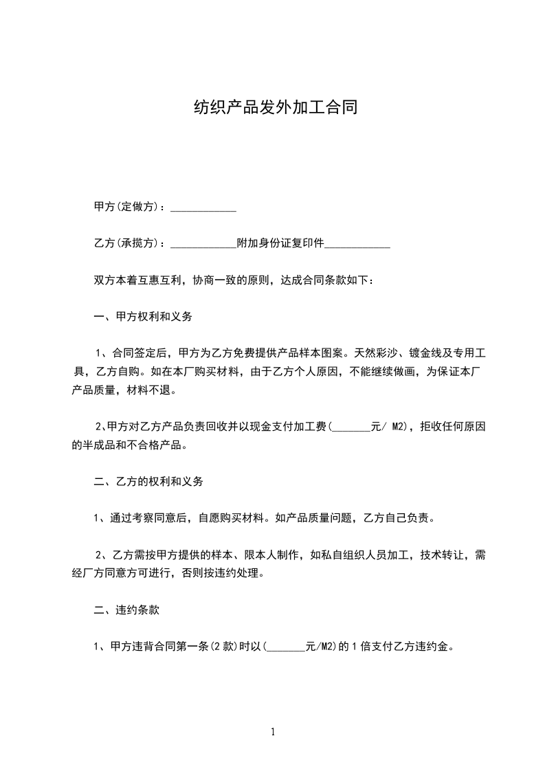 2、甲方对乙方产品负责回收并以现金支付加工费(_______元/M2),拒收任何原因的半成品和不合格产品。