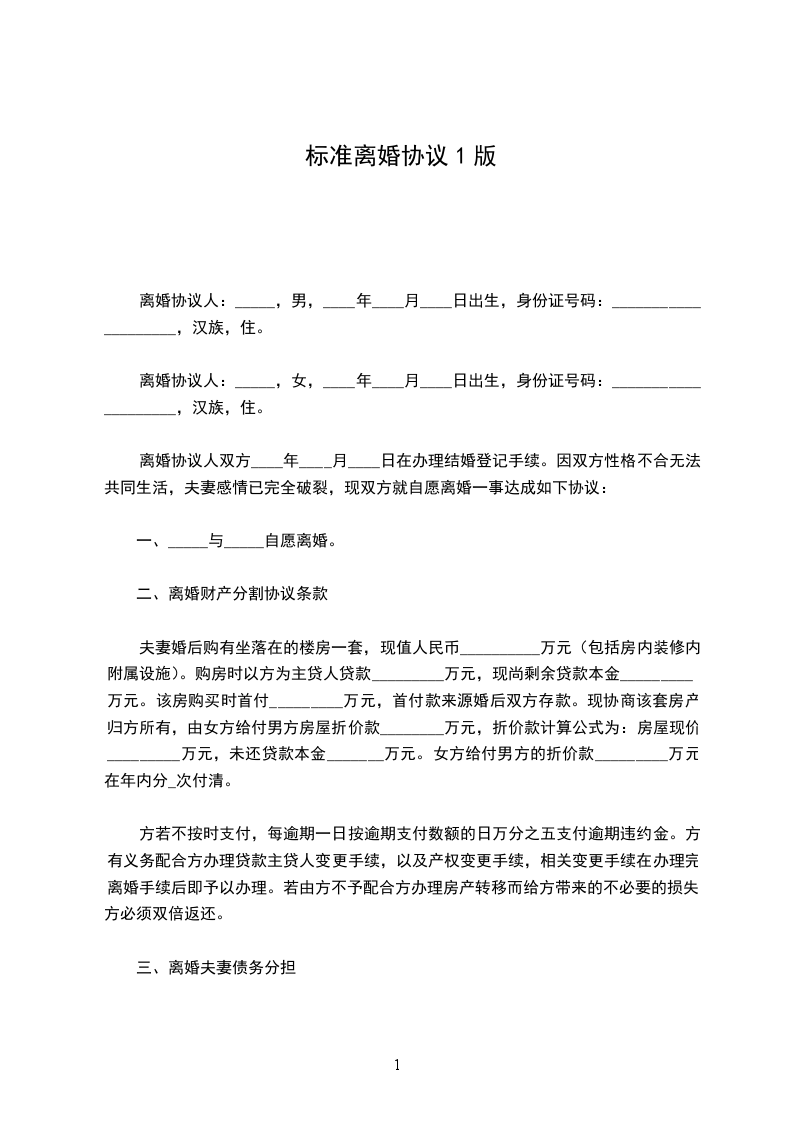 一、男方____与女方____自愿离婚。