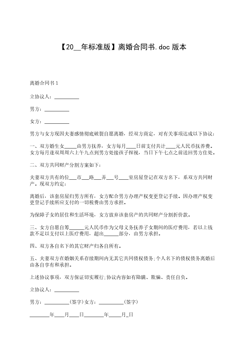(本协议一式三份,当事人双方各执一份,交婚姻登记机关存档备案一份)